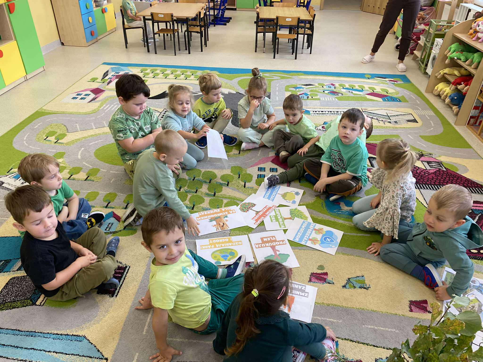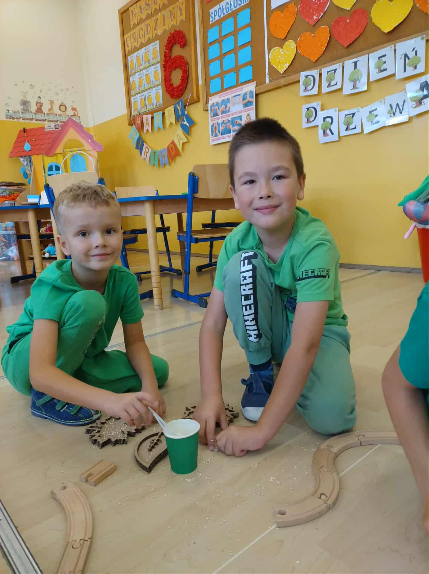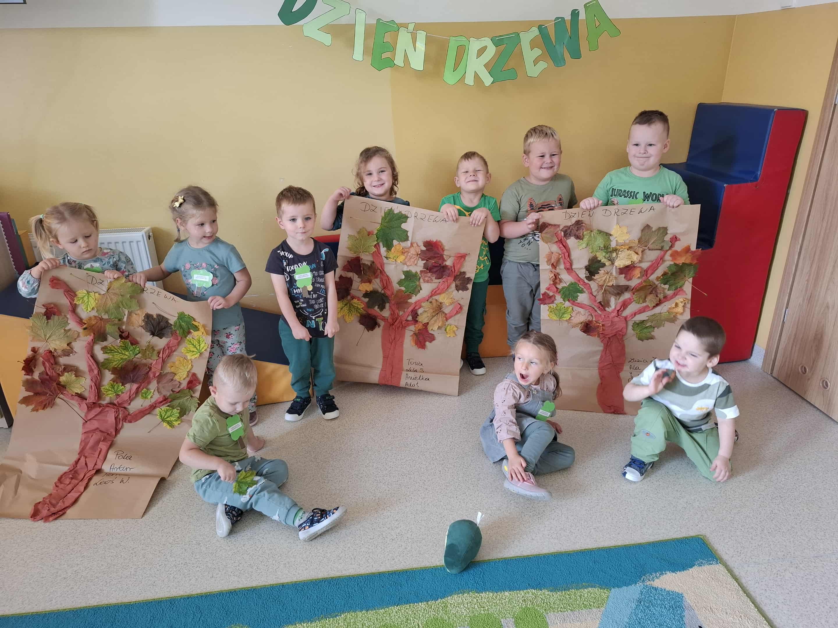 Maluszki – Sówki i Biedronki – również z wielką ciekawością uczestniczyły w świętowaniu. Choć są najmłodsze, także rozumieją, że drzewa trzeba szanować i chronić. W grupach stworzyły sensoryczne drzewa, wykorzystując do nich zgromadzone materiały. Było to wspaniałe doświadczenie, łączące naturę ze sztuką.
