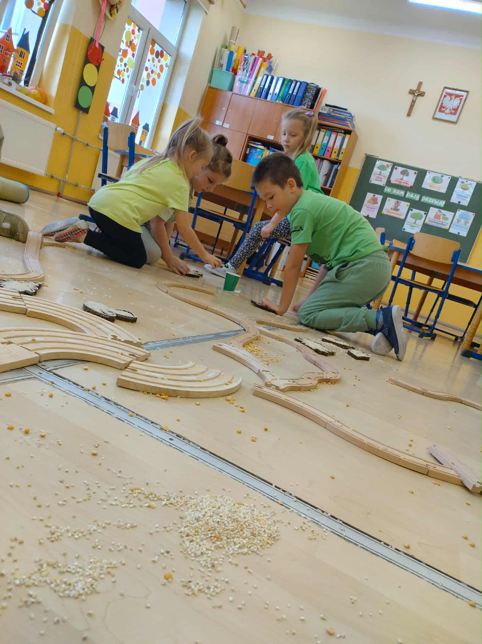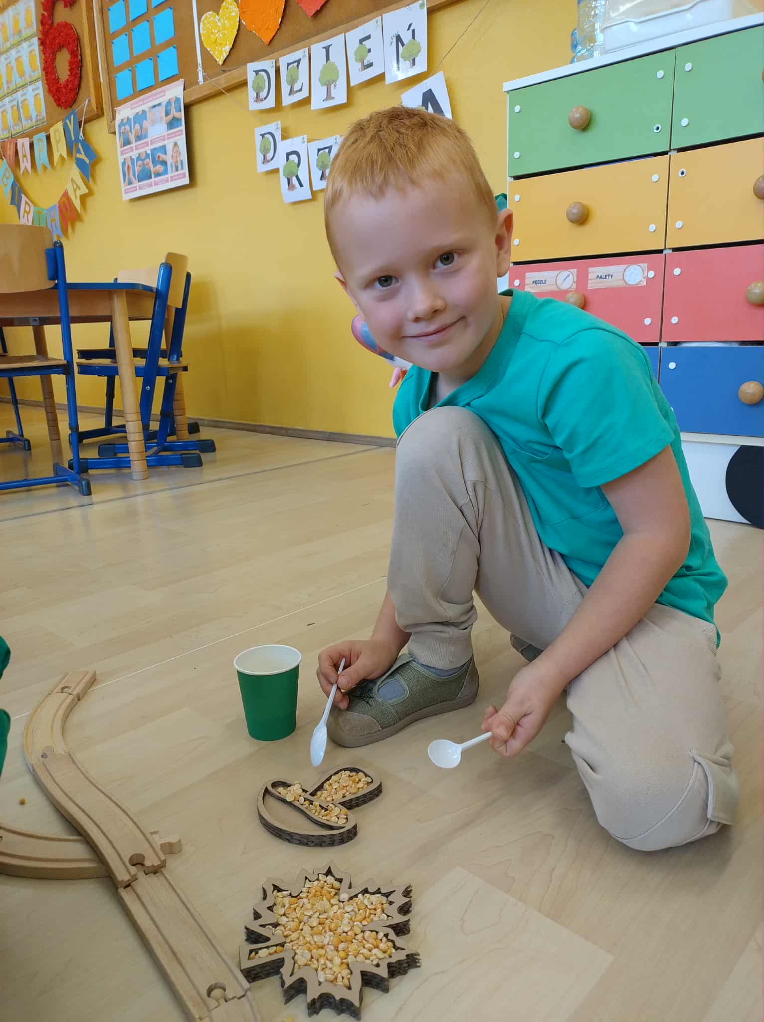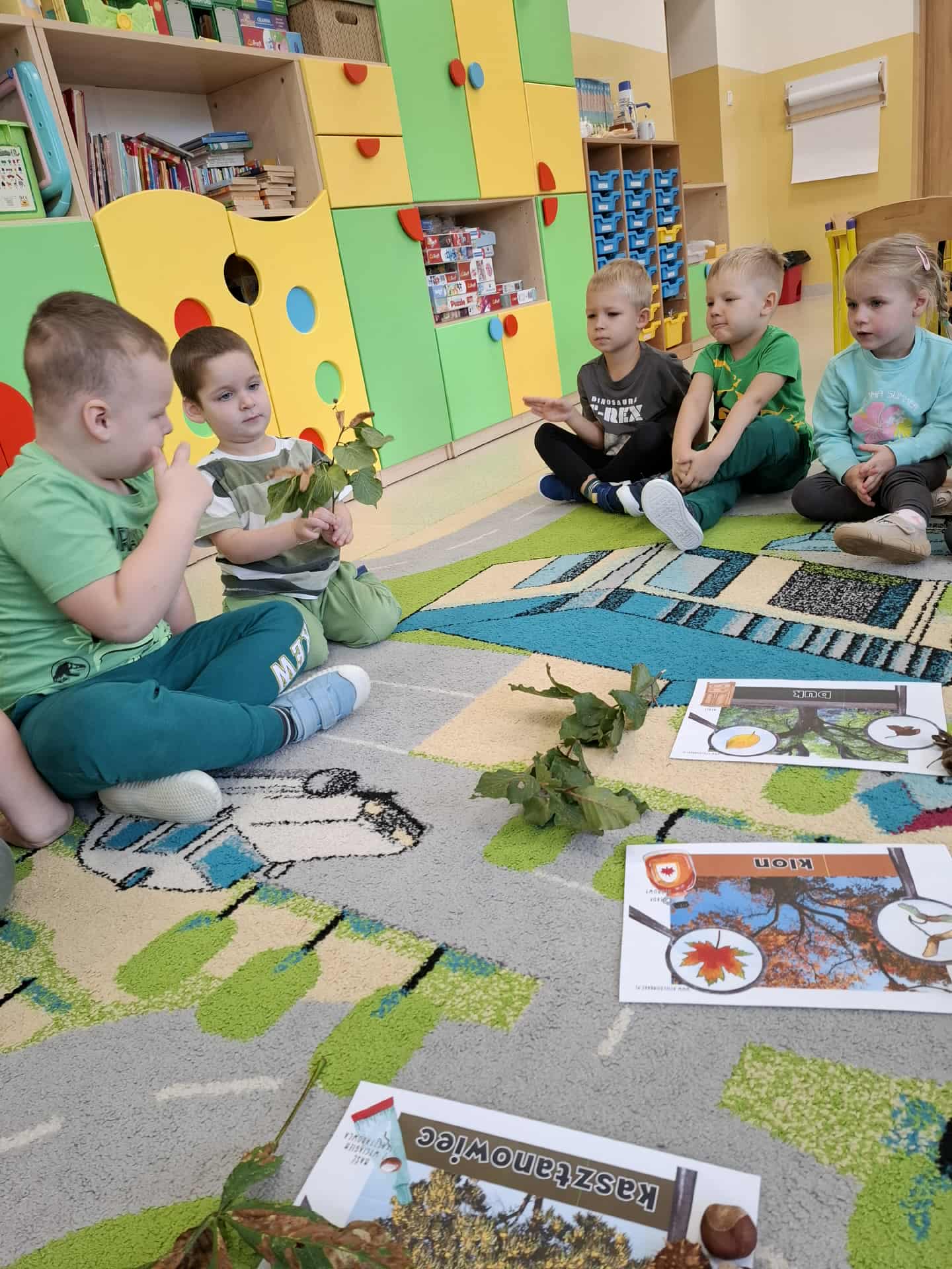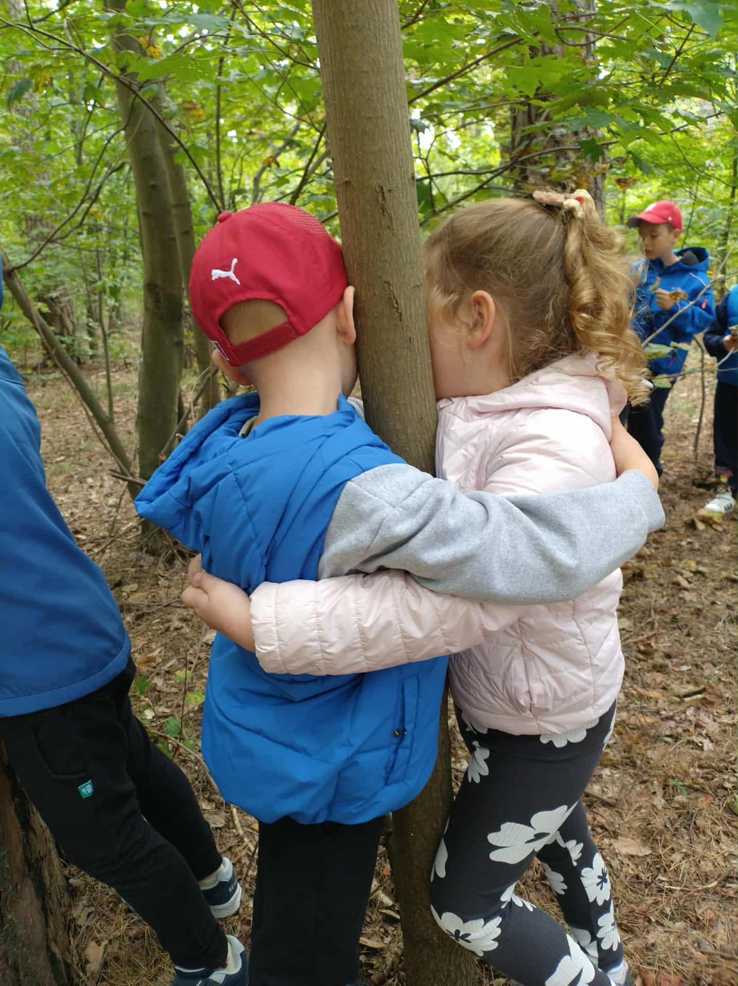 Najstarsze przedszkolaki – Misie – z ogromnym zaangażowaniem poznawały budowę drzewa: korzenie, pień, gałęzie i liście. Rozmawiały także o gatunkach drzew i potrafiły wskazać, czym poszczególne gatunki różnią się między sobą. Misie już doskonale wiedzą, dlaczego drzewa są nam potrzebne. Rozwiązywały też zadania z literkami, tworząc wyrazy związane z lasem i przyrodą, wyszukiwały literki w nazwach drzew itp. Misie, wykorzystując swoją wyobraźnię stworzyły drzewo sensoryczne.