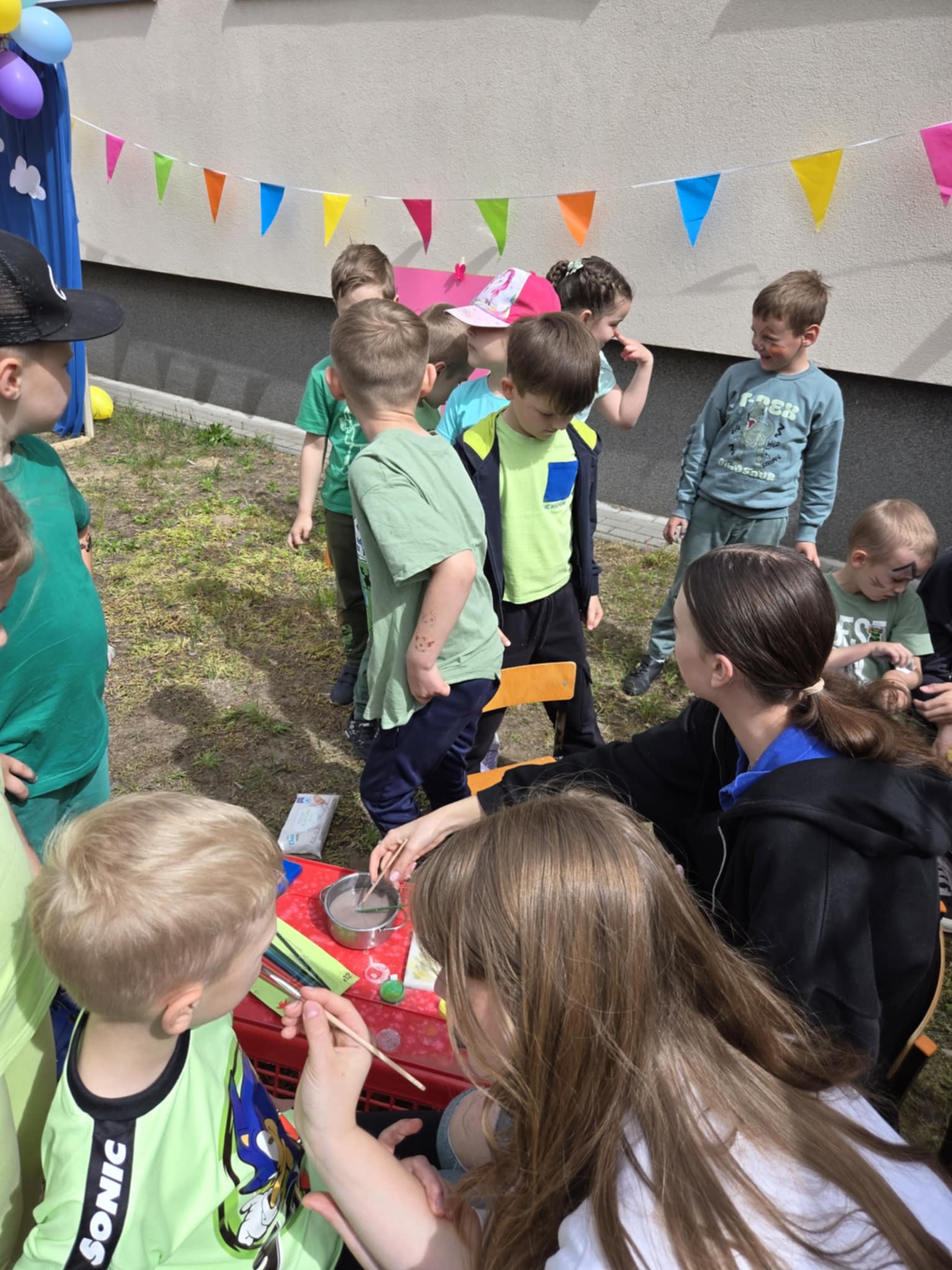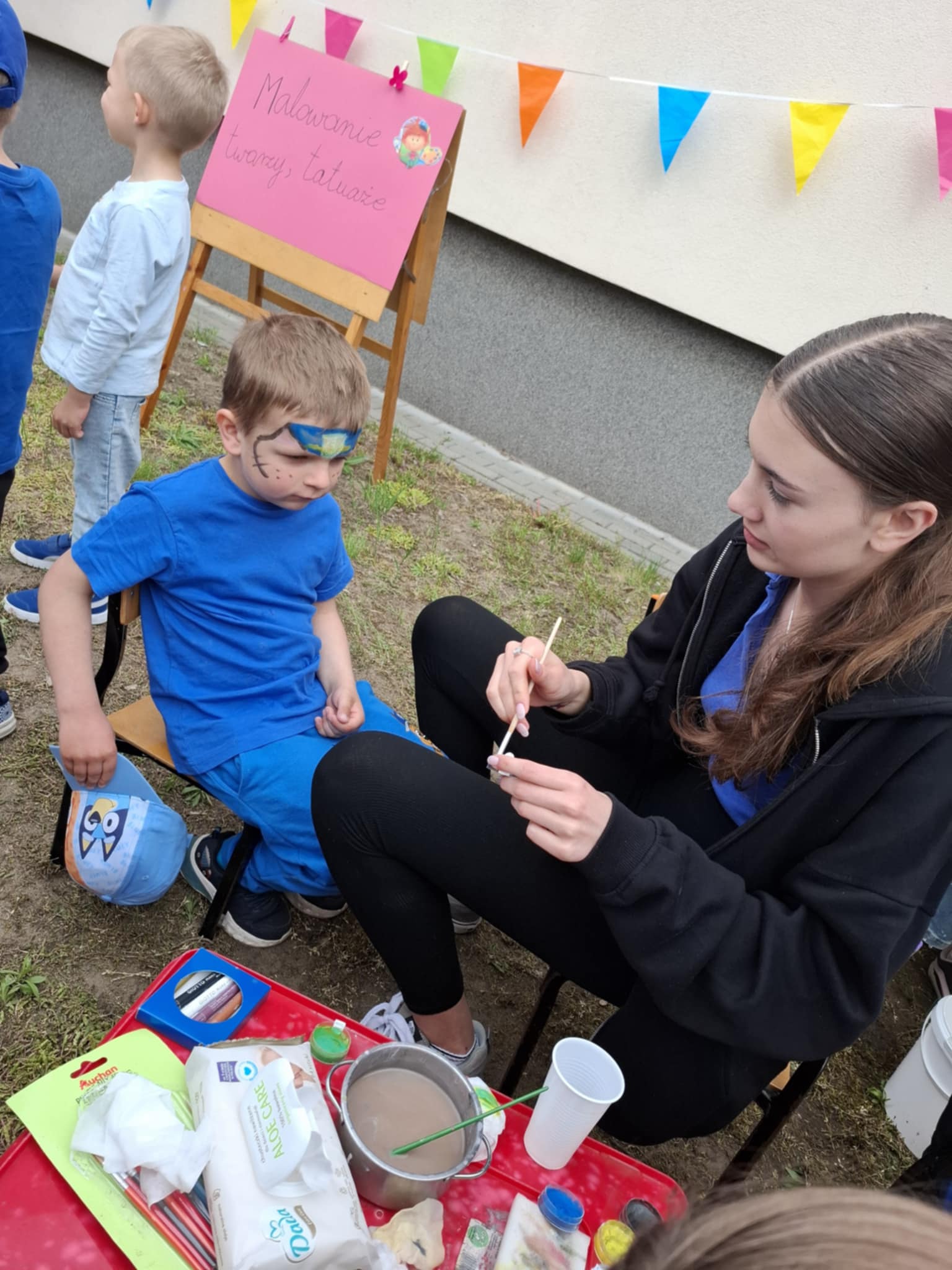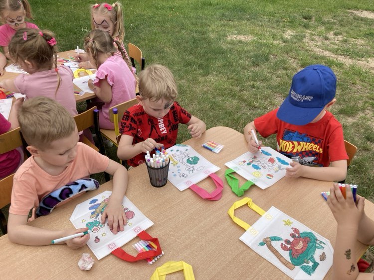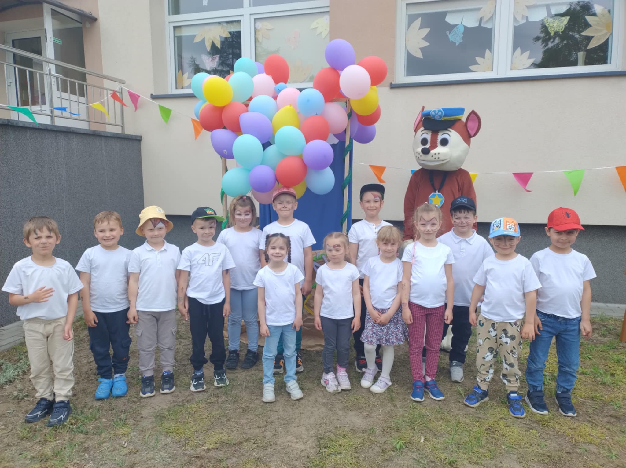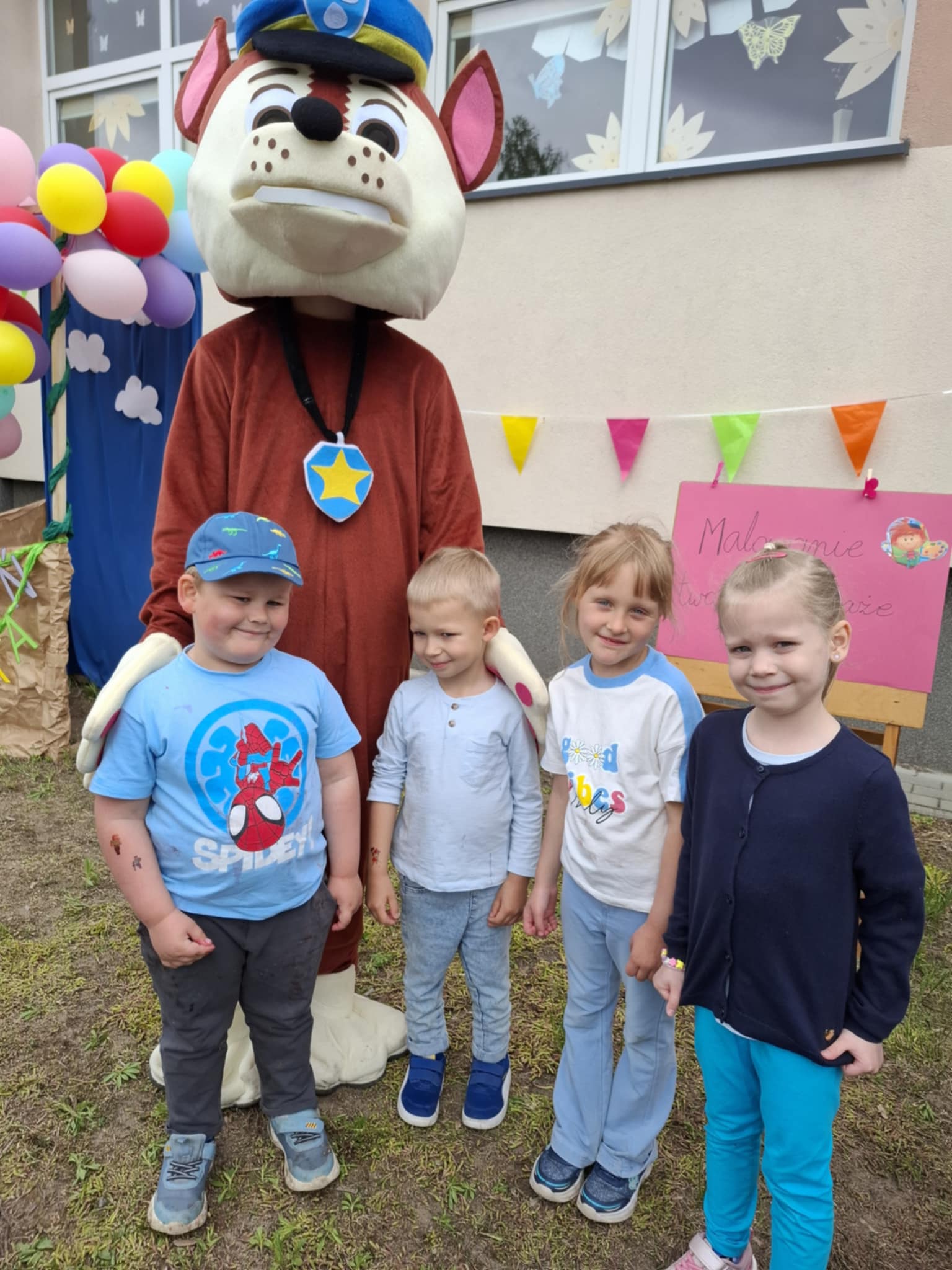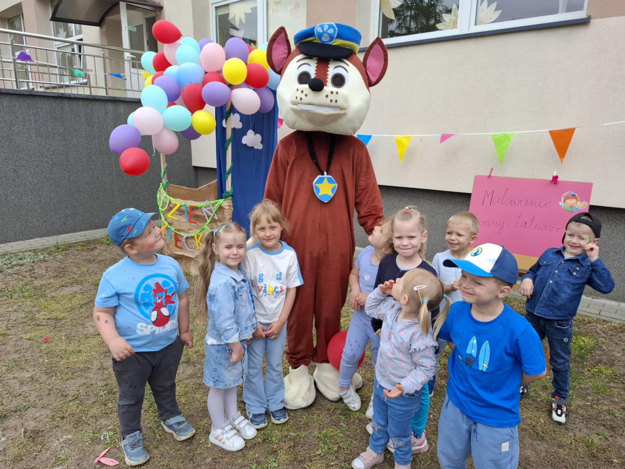 Ogromnym powodzeniem cieszyło się malowanie twarzy oraz tatuaże, które zamieniały naszych przedszkolaków w kolorowe motyle, tygryski i superbohaterów. Dodatkową niespodzianką była wizyta wyjątkowego gościa – Chase’a z Psiego Patrolu, z którym dzieci mogły zrobić sobie pamiątkowe zdjęcie.