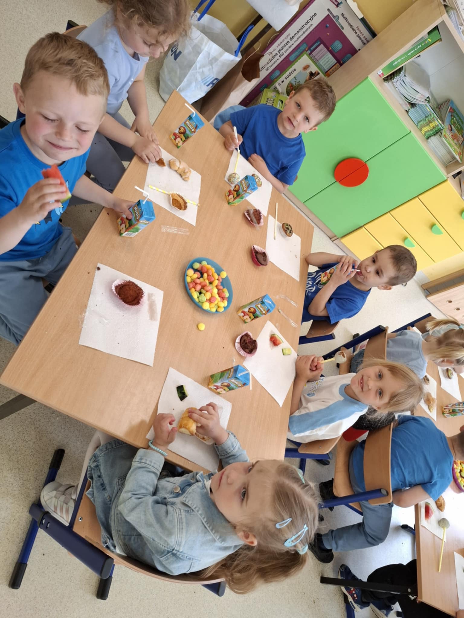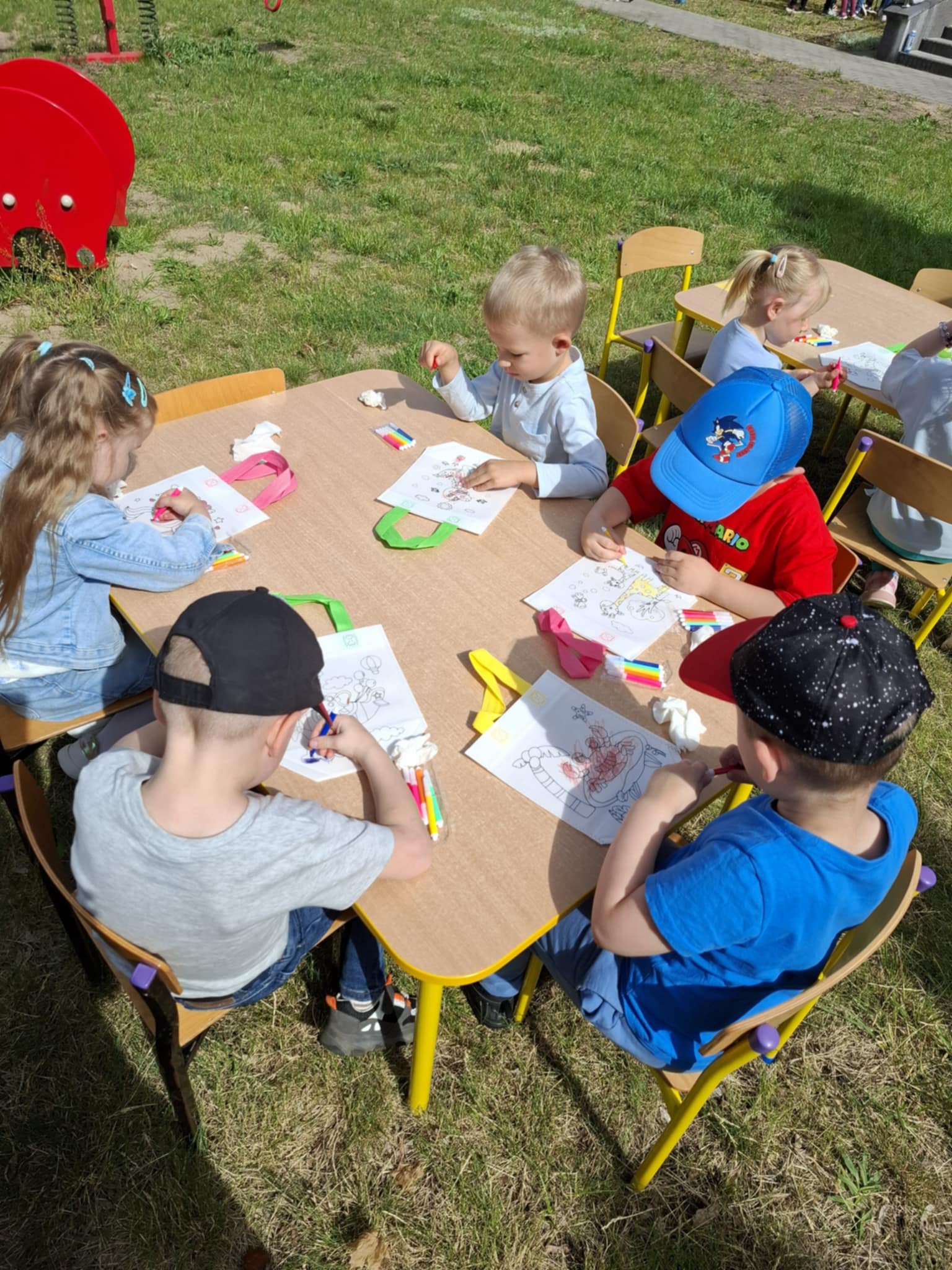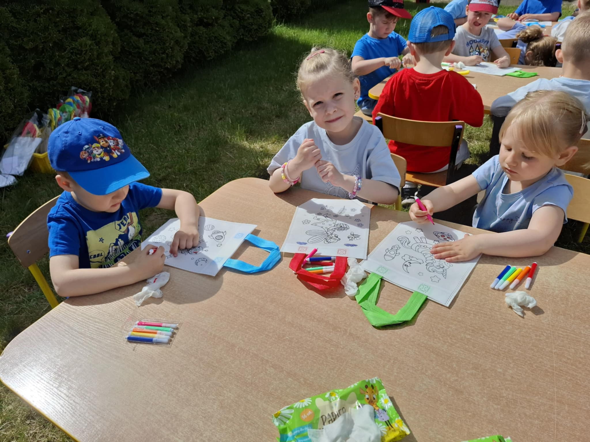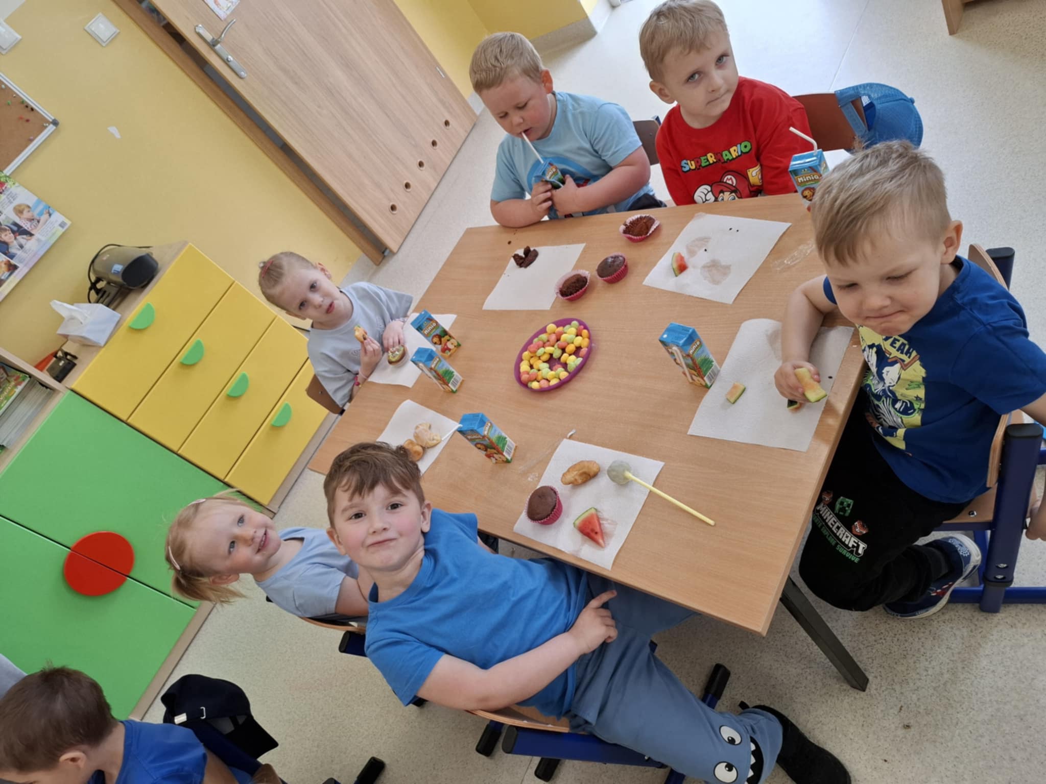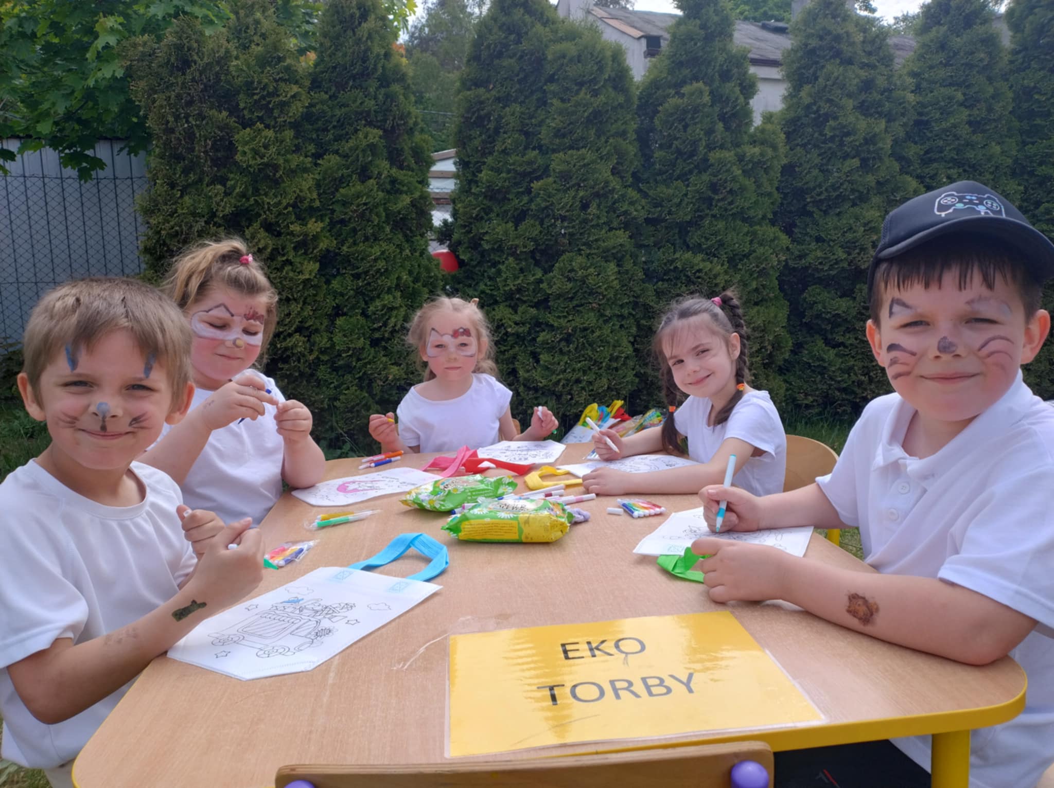 Ogromnym powodzeniem cieszyło się malowanie twarzy oraz tatuaże, które zamieniały naszych przedszkolaków w kolorowe motyle, tygryski i superbohaterów. Dodatkową niespodzianką była wizyta wyjątkowego gościa – Chase’a z Psiego Patrolu, z którym dzieci mogły zrobić sobie pamiątkowe zdjęcie.