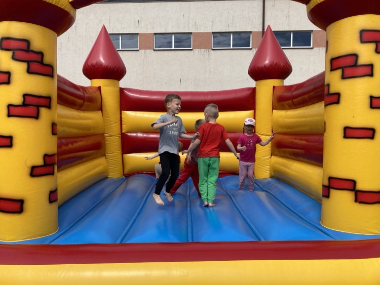 Dzieci miały okazję wyszaleć się na dmuchańcach, które jak zawsze cieszyły się ogromnym zainteresowaniem. Nie zabrakło emocjonujących wyścigów w workach, zabawnych prób skakania na piłkach i pełnego śmiechu przeciągania liny – emocje sięgały zenitu!
