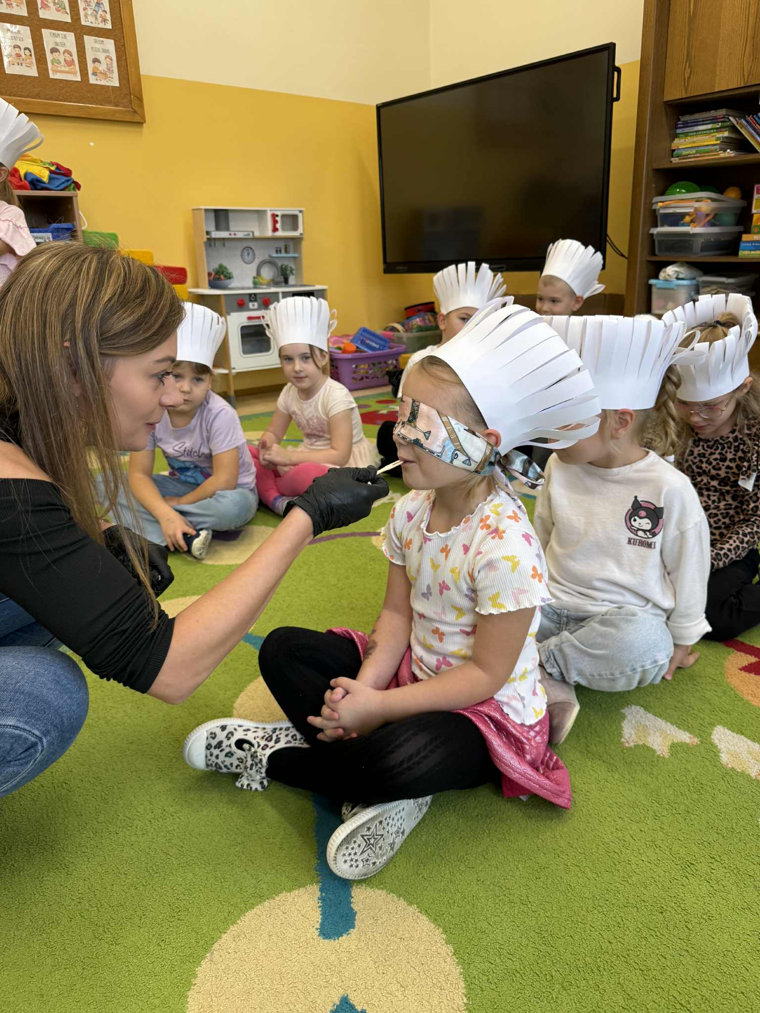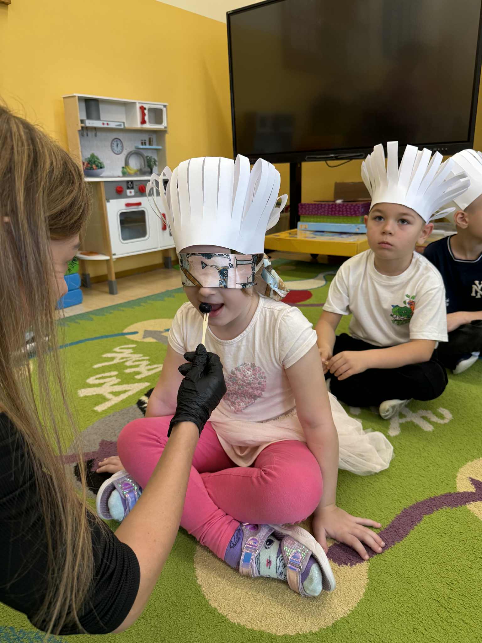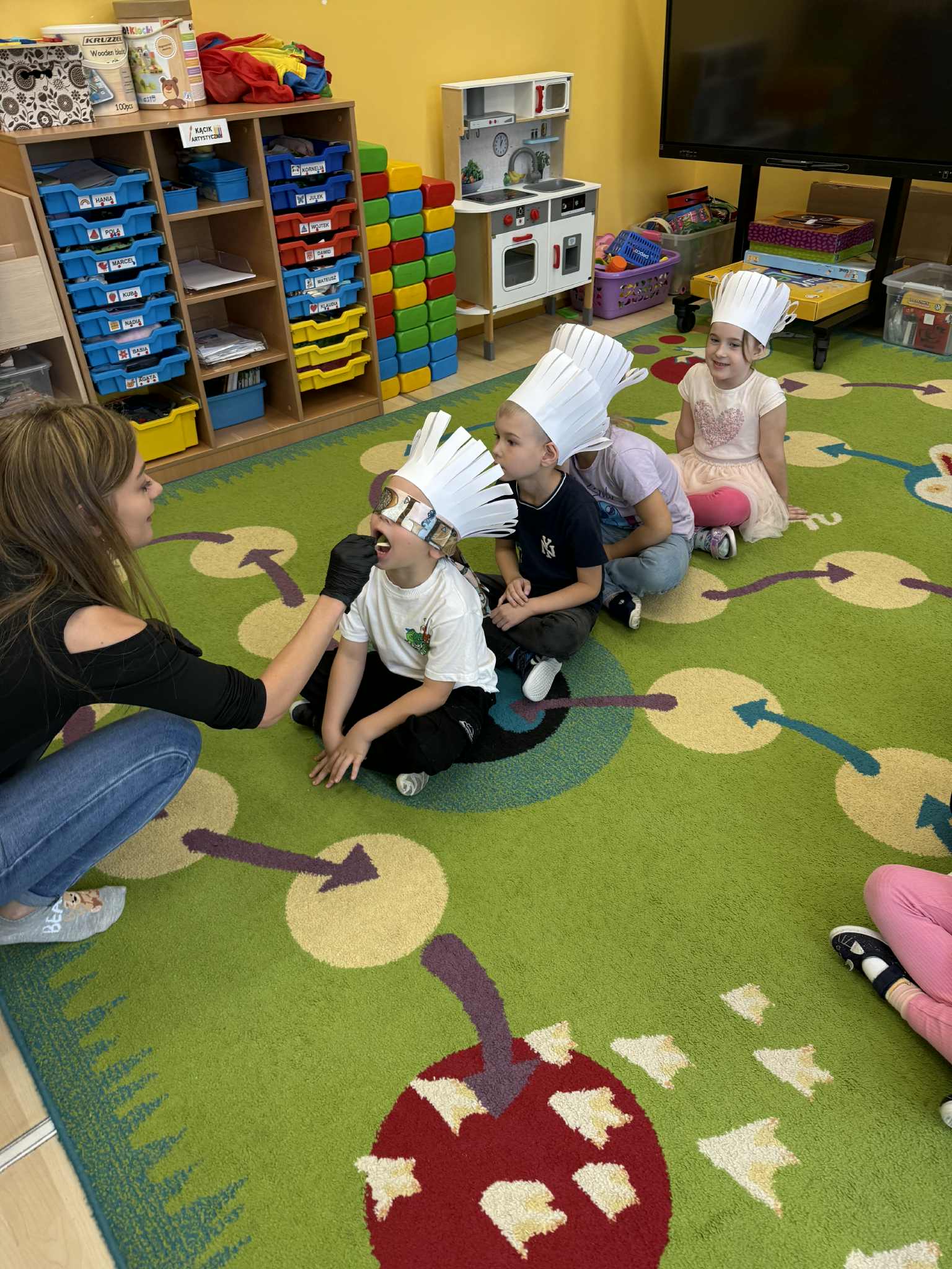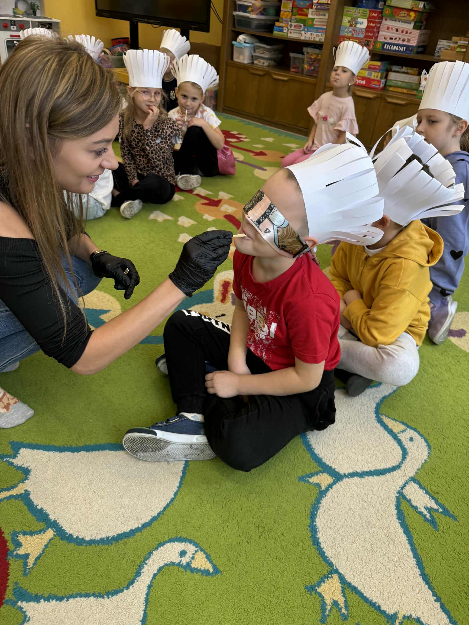 W grupie „Pszczółki” świętowaliśmy Dzień Warzyw i Owoców! Tego dnia w naszej sali było wyjątkowo kolorowo, pachnąco i bardzo wesoło. Dzieci wspólnie z rodzicami uczestniczyły w zabawach ruchowych i konkursach, podczas których odgadywały, jaki to owoc lub warzywo. Było mnóstwo śmiechu i zaskoczeń – nie zawsze łatwo było rozpoznać marchewkę z zamkniętymi oczami! Najwięcej emocji wzbudziły warsztaty kulinarne. Każde dziecko mogło samodzielnie przygotować kolorowe i zdrowe szaszłyki owocowe oraz wycisnąć pyszny sok z ulubionych owoców i warzyw. W całej sali unosił się piękny zapach, a na buziach dzieci gościły szerokie uśmiechy. To był dzień pełen radości, wspólnej zabawy i nauki o tym, jak ważne jest zdrowe odżywianie. „Pszczółki” przekonały się, że warzywa i owoce są nie tylko zdrowe, ale też bardzo smaczne! Serdecznie dziękujemy Rodzicom za zaangażowanie, pomoc i wspólną zabawę. Dzięki Wam ten dzień był jeszcze bardziej wyjątkowy.