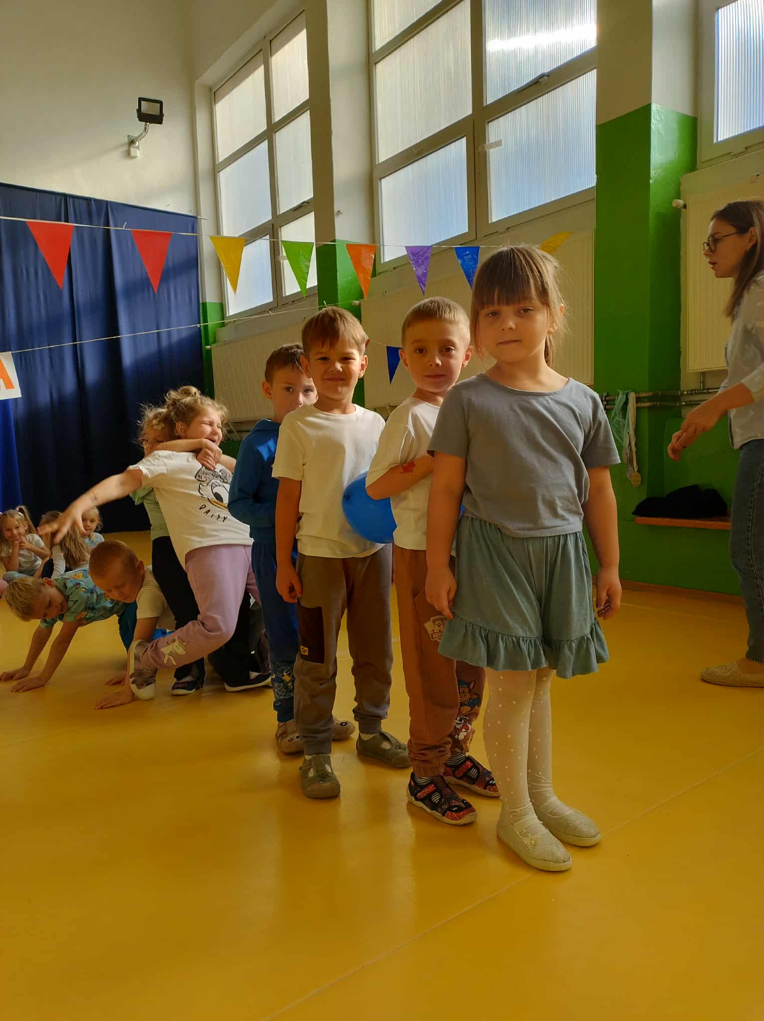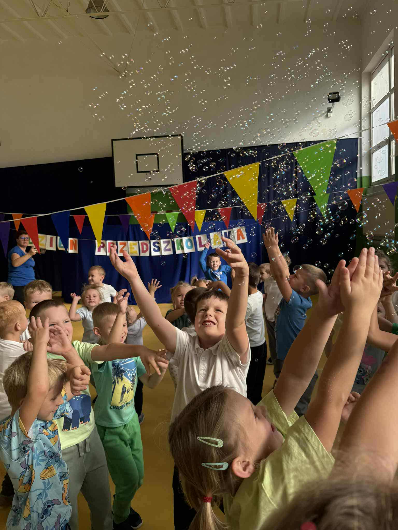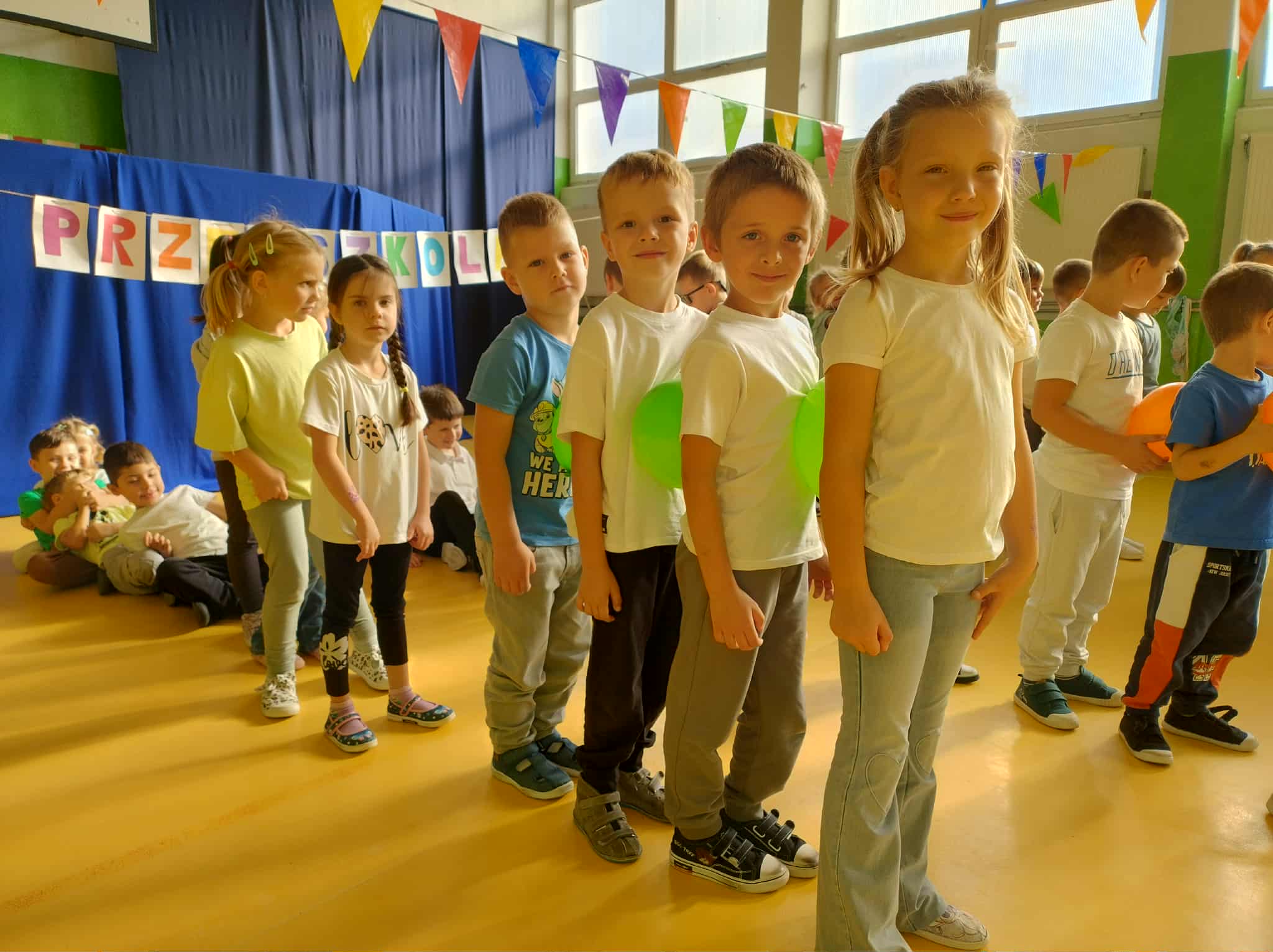 Nasze pięcio- i sześciolatki wspólnie świętowały wyjątkowy dzień – Dzień Przedszkolaka! To była prawdziwa sportowa przygoda pełna radości i uśmiechu. Dzieci uczestniczyły w wesołych konkurencjach, tańcach i zabawach ruchowych. Nie zabrakło również ogromnych emocji podczas puszczania baniek mydlanych oraz chwili radości, gdy wystrzelił wielki balon wypełniony cukierkami ![]()
