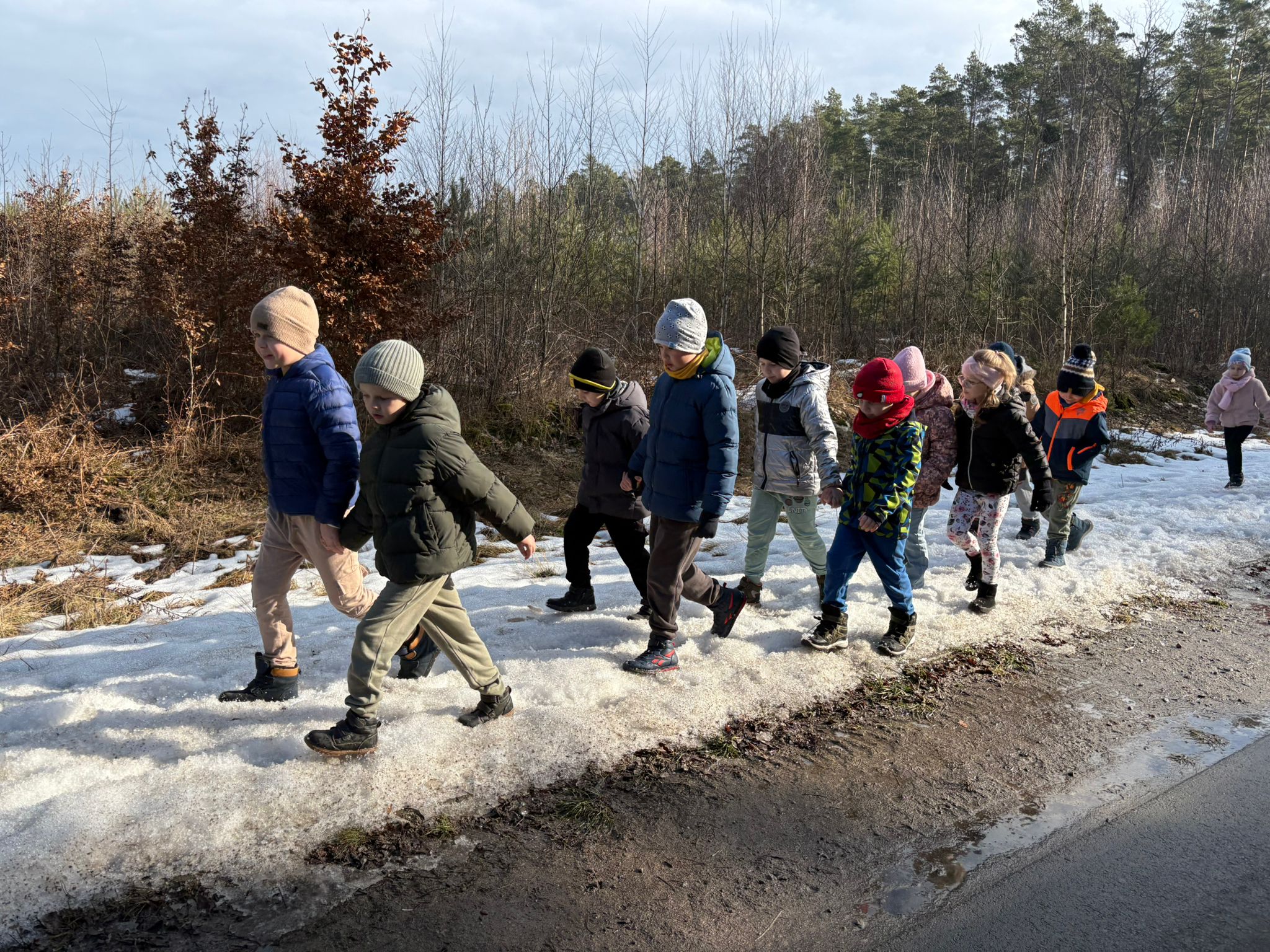 Grupy Misie i Pszczółki wybrały się na zajęcia edukacyjne do Nadleśnictwa w Skrwilnie. Podczas wizyty dzieci miały okazję uczestniczyć w spacerze ścieżką edukacyjną, gdzie mogły obserwować przyrodę oraz poznawać ciekawostki dotyczące lasu i jego mieszkańców.