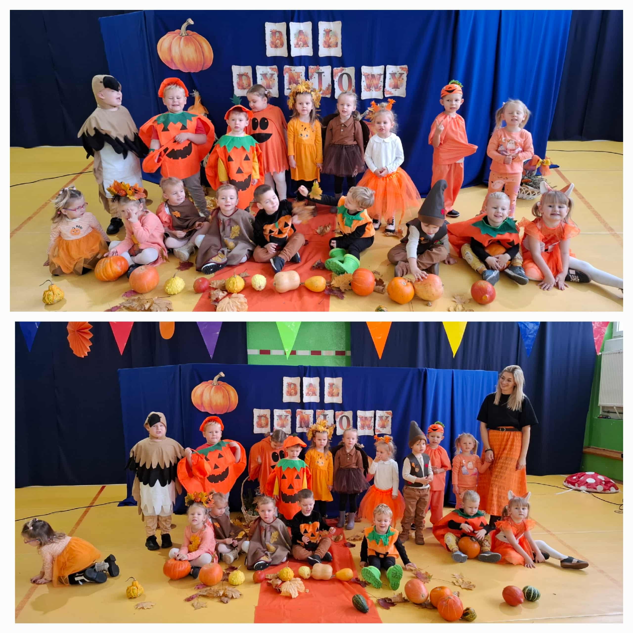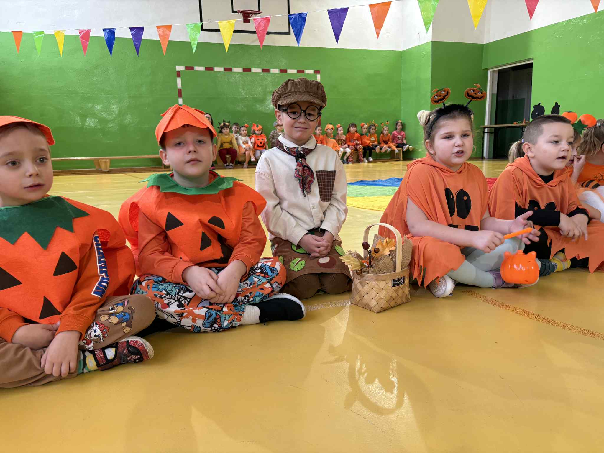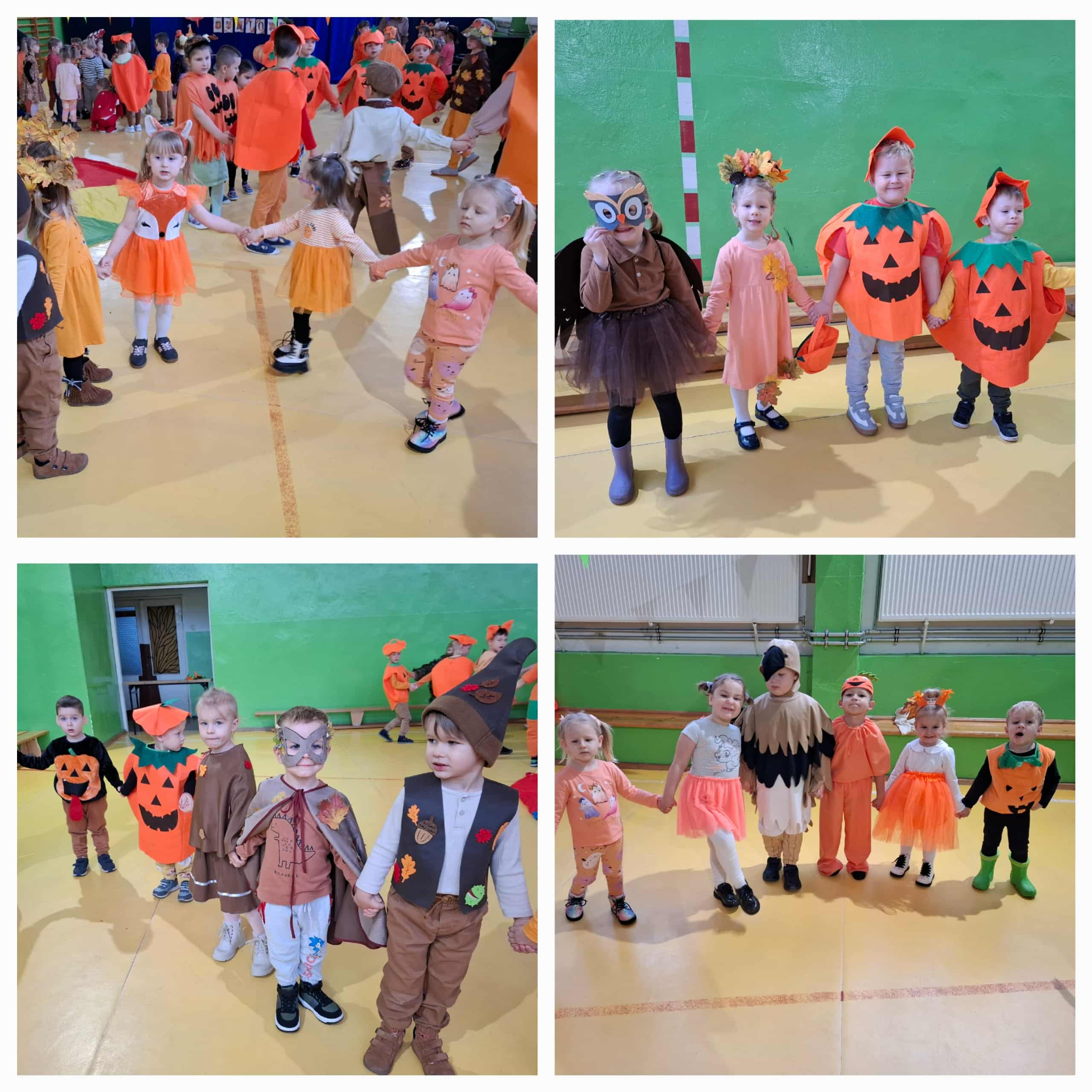 Dzieci przyszły tego dnia w fantastycznych, jesiennych przebraniach. Na sali można było spotkać dynie, liście, grzybki, wiewiórki, jeżyki i inne jesienne postacie. Wspaniałe stroje przygotowane wspólnie z rodzicami zachwycały pomysłowością i kolorami.