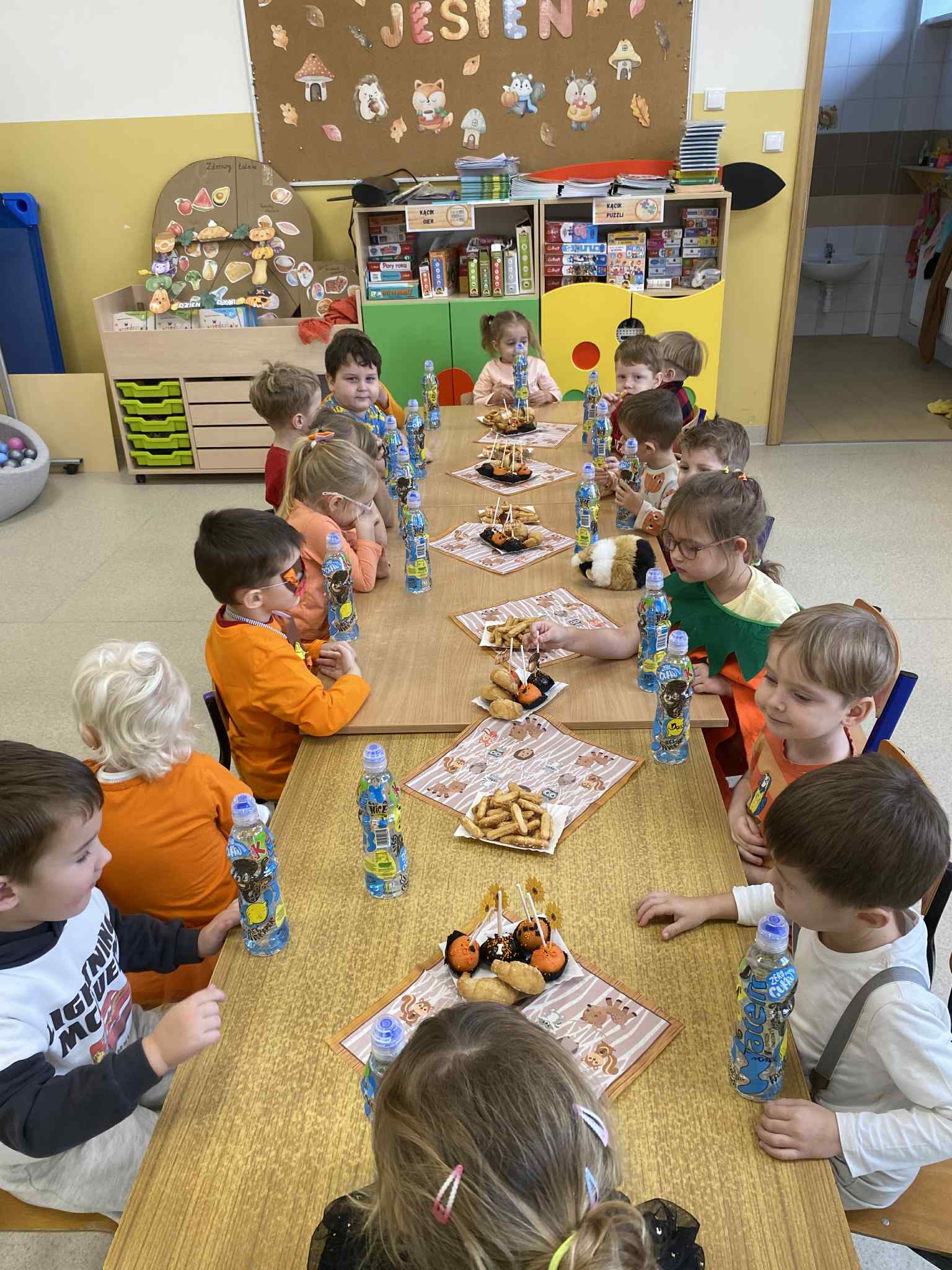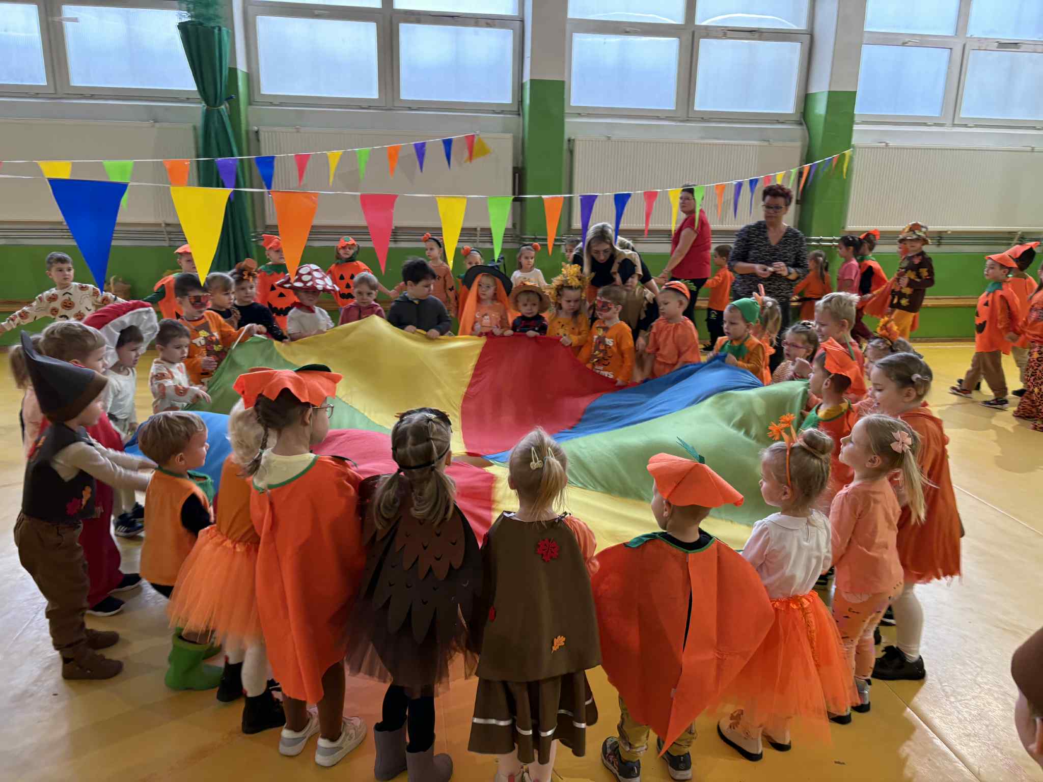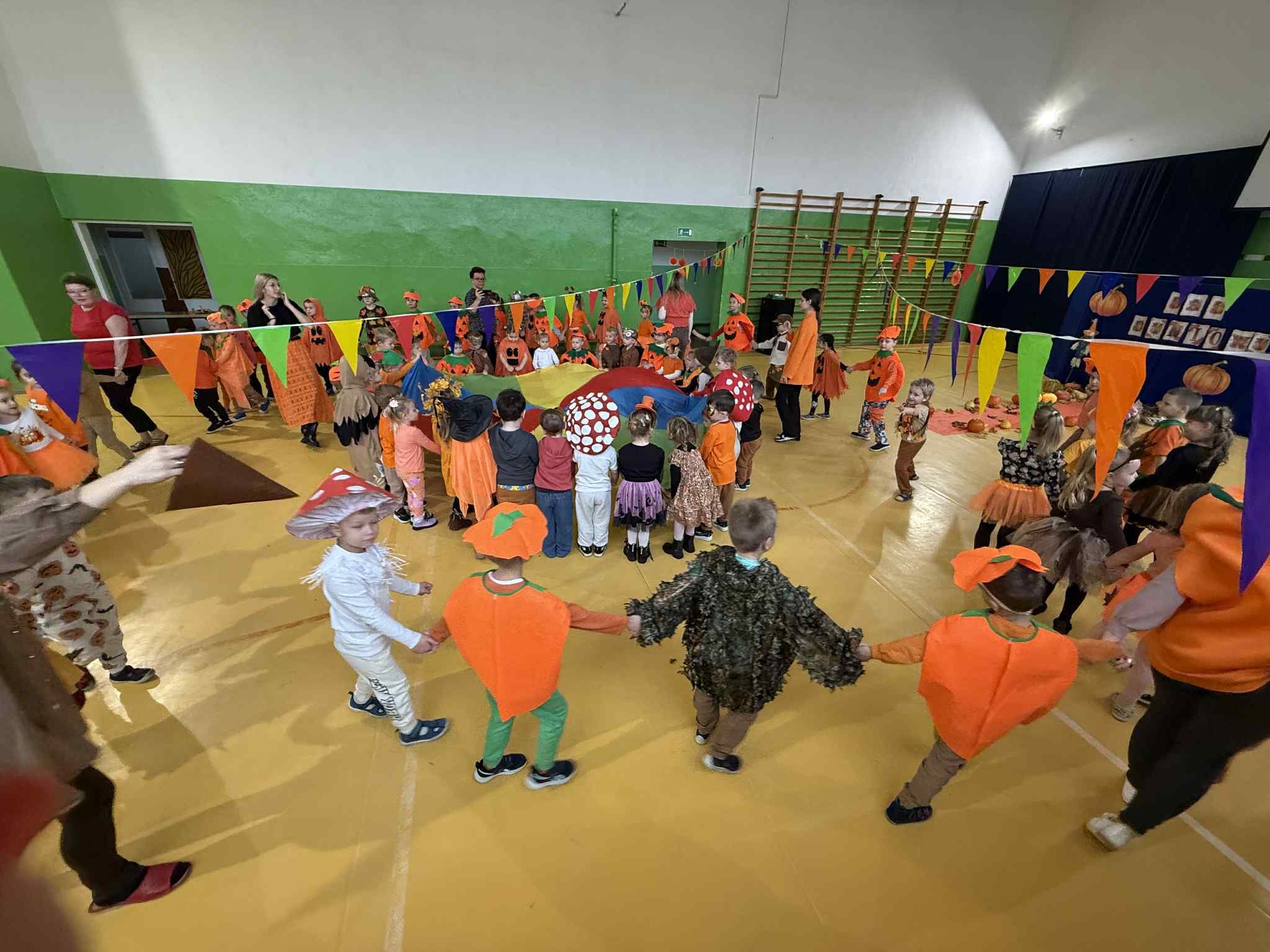 Dzieci przyszły tego dnia w fantastycznych, jesiennych przebraniach. Na sali można było spotkać dynie, liście, grzybki, wiewiórki, jeżyki i inne jesienne postacie. Wspaniałe stroje przygotowane wspólnie z rodzicami zachwycały pomysłowością i kolorami.