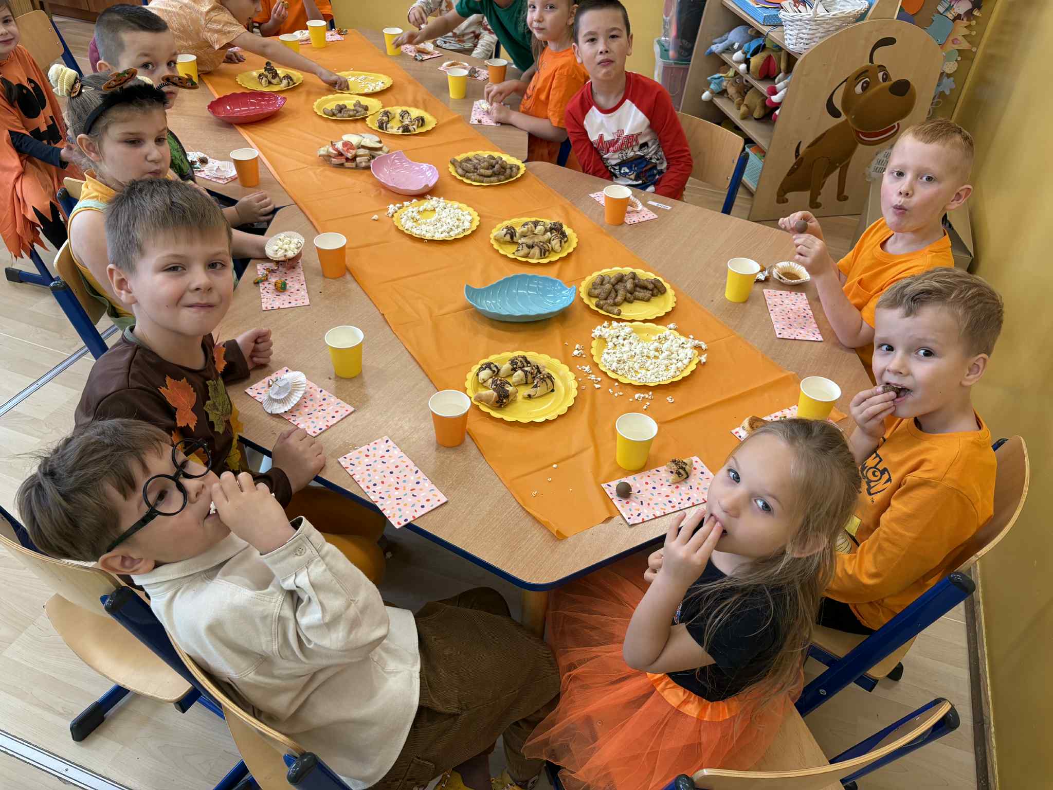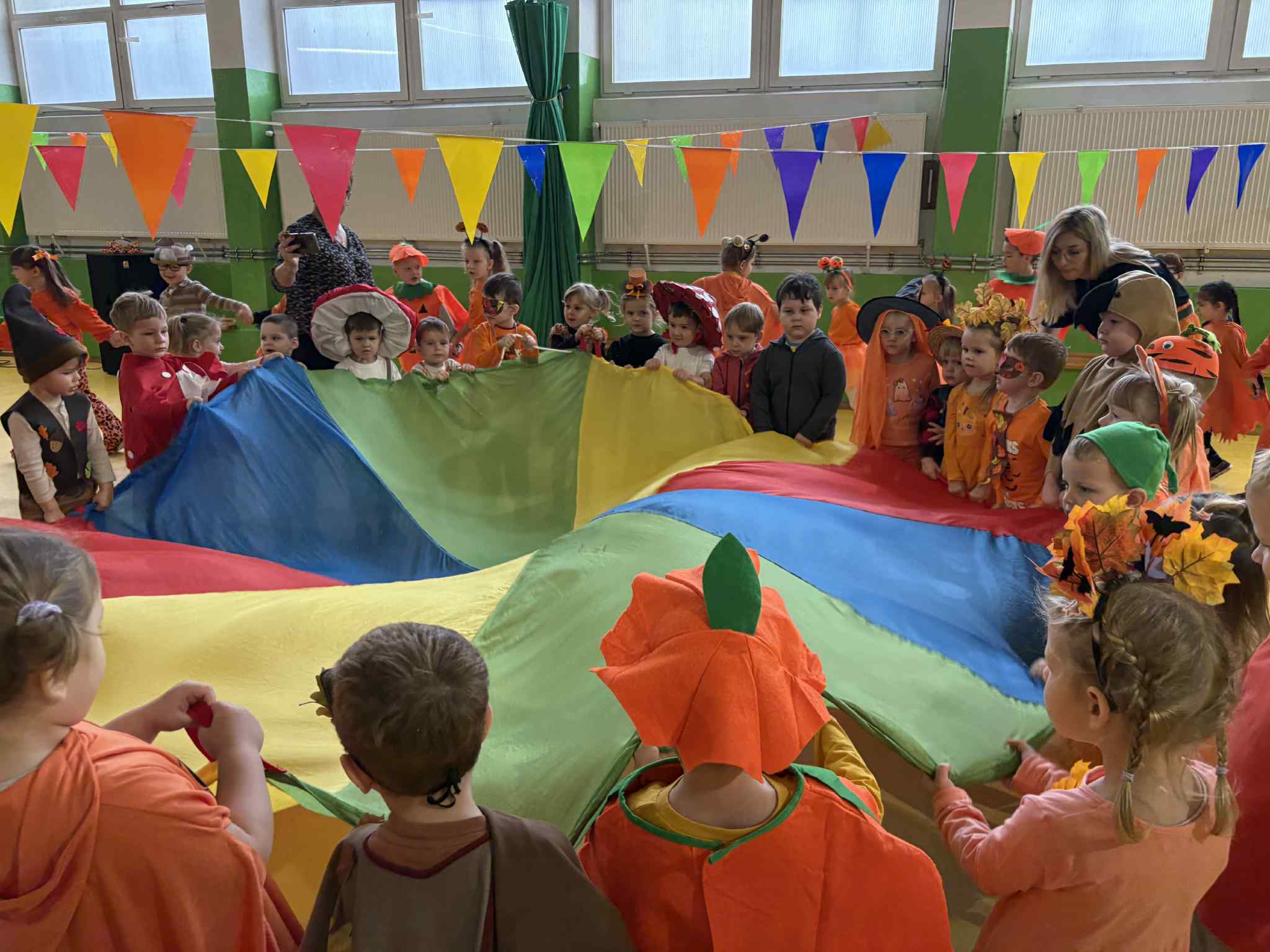 W naszym przedszkolu odbył się pełen kolorów i radości Jesienny Bal Dyniowy! Sala zamieniła się w bajkowy, jesienny ogród – wszędzie królowały pomarańczowe, żółte i czerwone barwy, a wśród dekoracji dumnie prezentowały się piękne dynie.