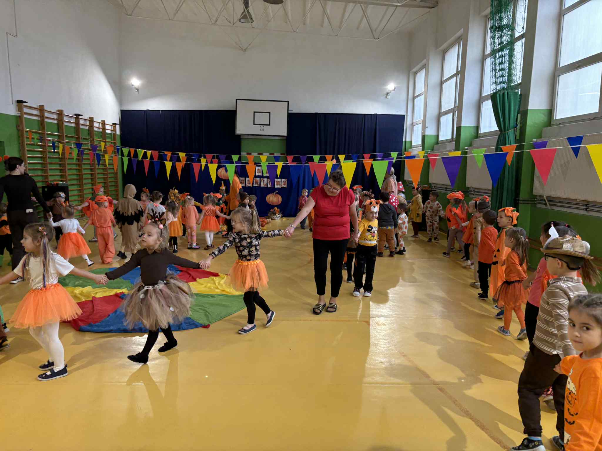 Podczas balu odbył się Jesienny Pokaz Mody, podczas którego każde dziecko mogło z dumą zaprezentować swój strój na „dyniowym wybiegu”. Publiczność nagradzała wszystkich gromkimi brawami! Po pokazie nadszedł czas na wspólną zabawę przy muzyce. Dzieci ze wszystkich grup tańczyły razem, uczestniczyły w wesołych konkursach i zabawach ruchowych. Nie zabrakło również dyniowych tańców i pląsów, które wprowadziły wszystkich w doskonały nastrój.