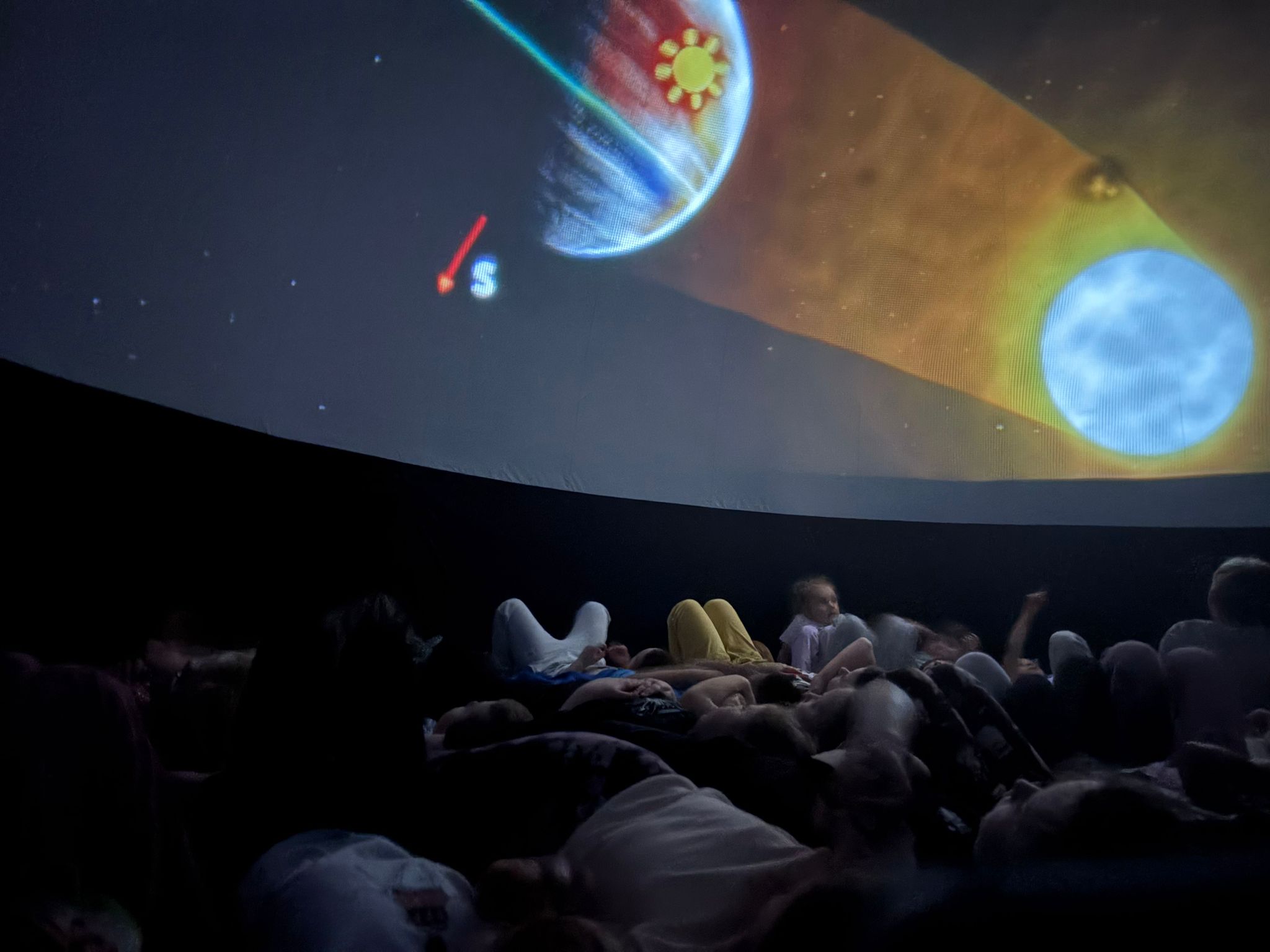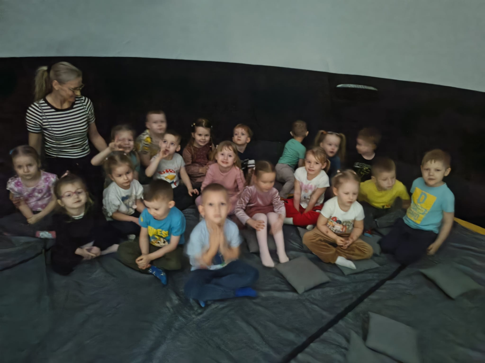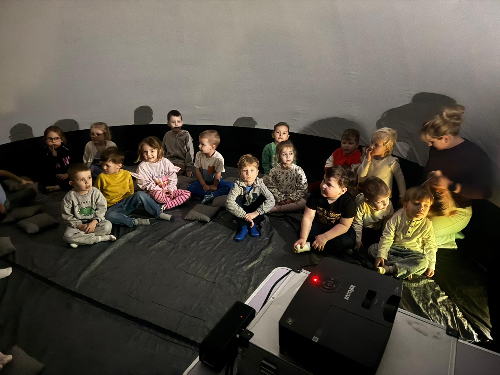 Seans dostarczył dzieciom wielu wrażeń i pozwolił przenieść się w niezwykły świat pełen ruchomych obrazów i dźwięków. Starsze przedszkolaki mogły utrwalić swoją wiedzę na temat naszej planety – dowiedziały się, jak Ziemia obraca się wokół własnej osi i wokół Słońca, skąd biorą się pory roku oraz dlaczego następuje dzień i noc.