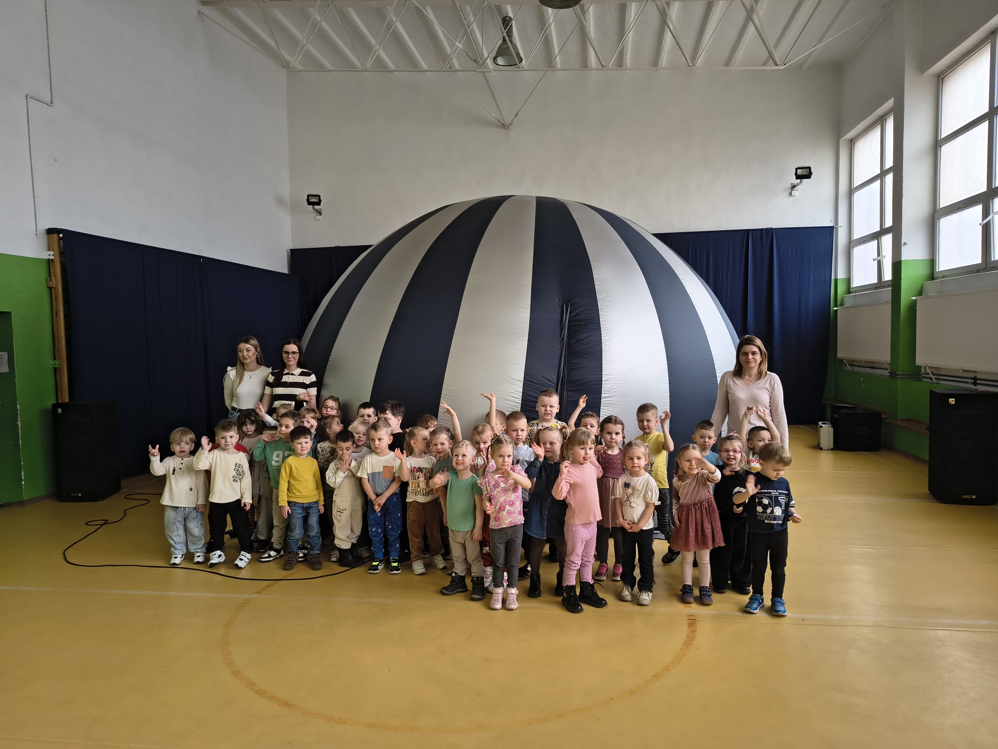 Przedszkolaki z wszystkich grup przedszkolnych miały fantastyczną okazję obejrzenia spektaklu „Zaczarowany Globus” w kinie sferycznym.
