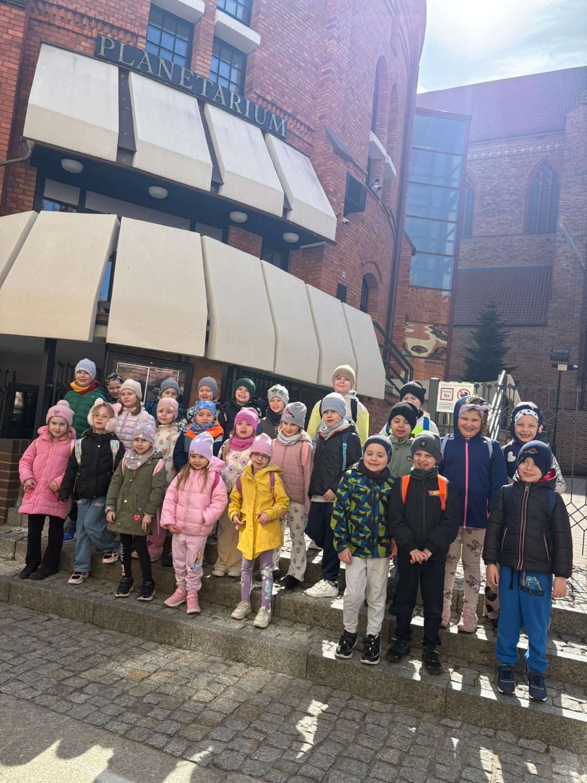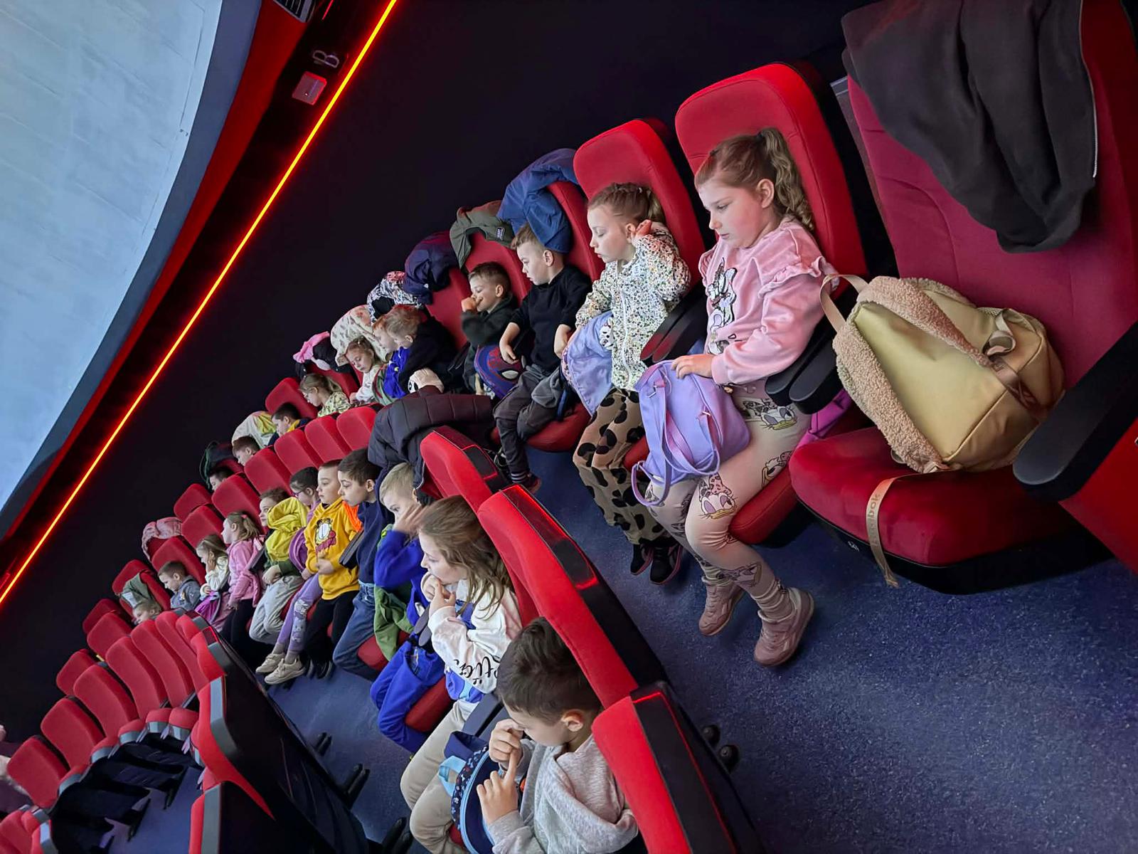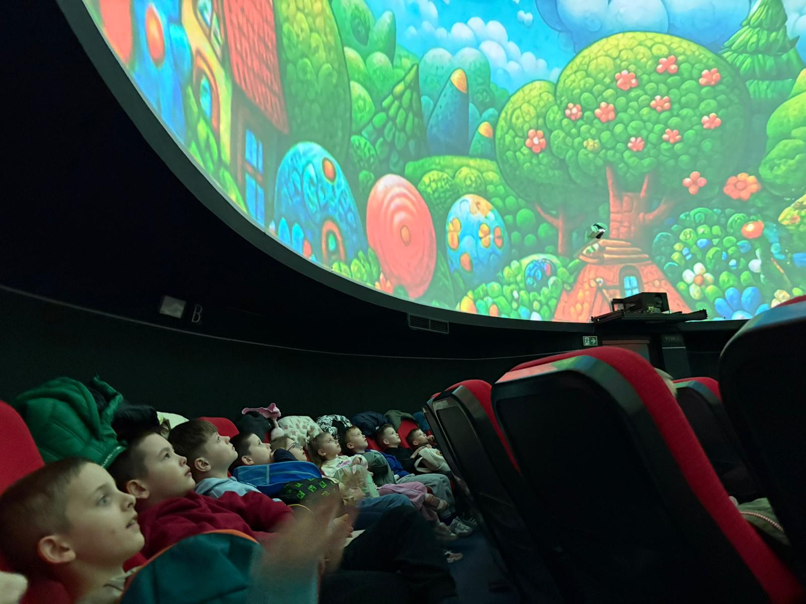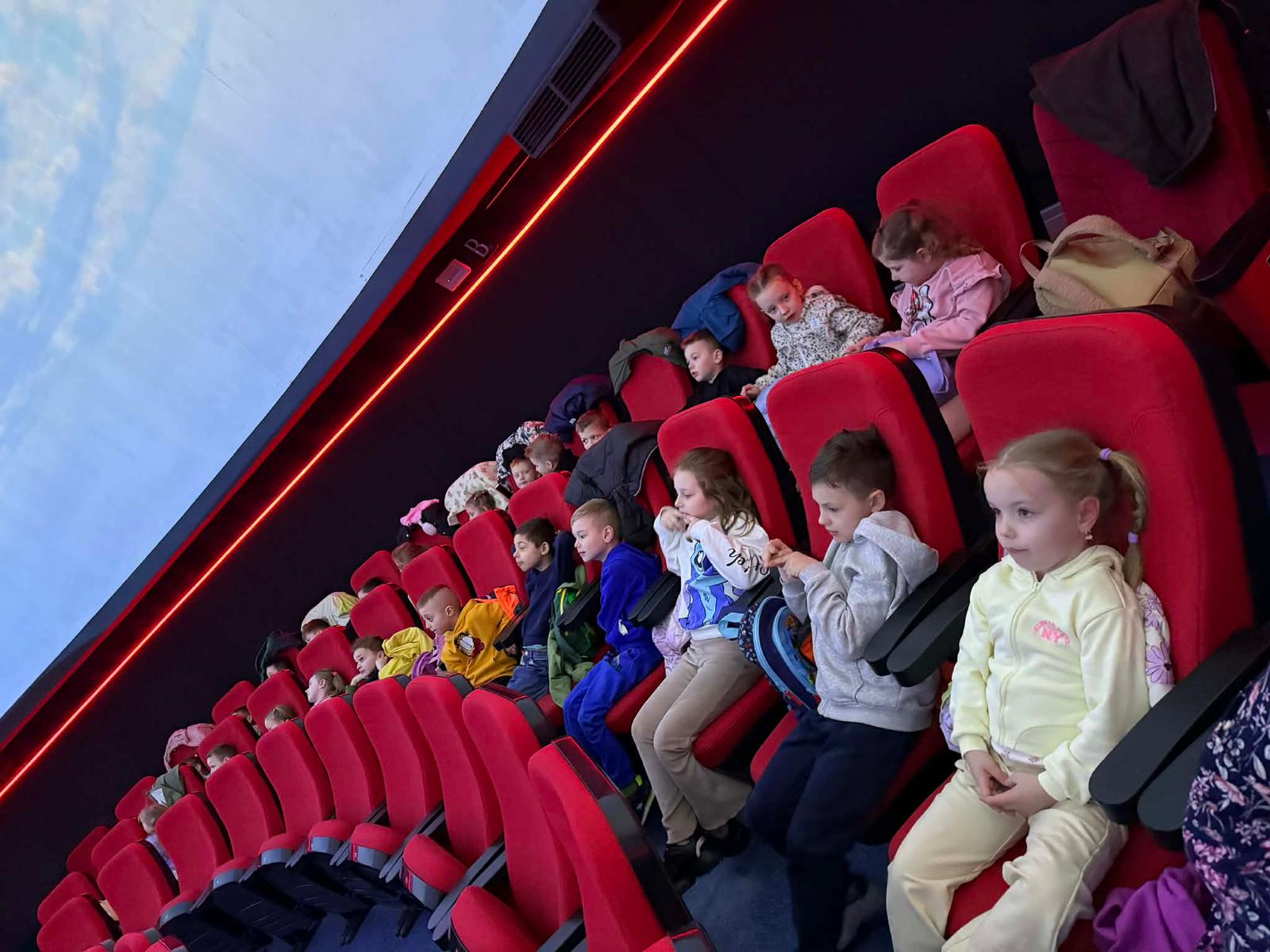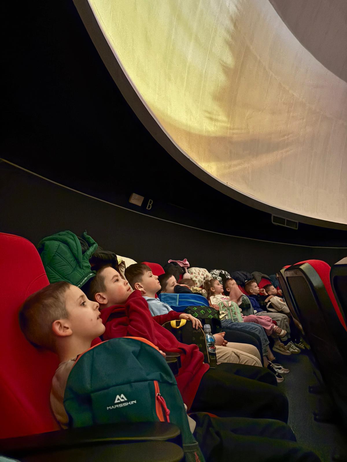 Naszą podróż rozpoczęliśmy od wizyty w toruńskim Planetarium, gdzie obejrzeliśmy seans pt. „Cudowna Podróż”. Dzieci były absolutnie zachwycone! Dzięki nowoczesnej technologii nasi mali odkrywcy poczuli się, jakby siedzieli wewnątrz prawdziwej rakiety startującej prosto w gwiazdy.