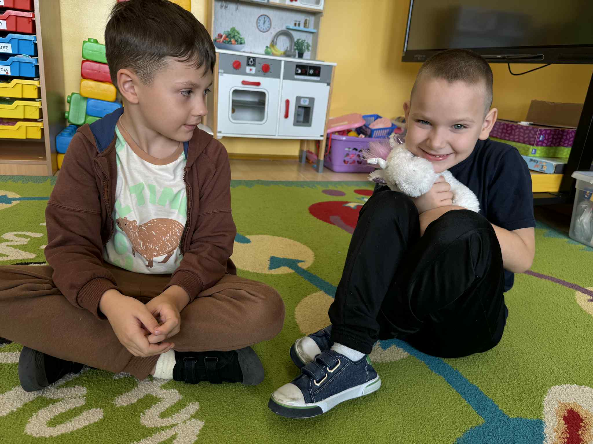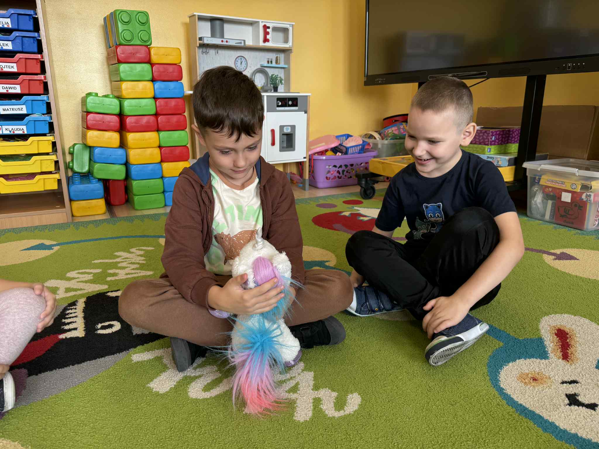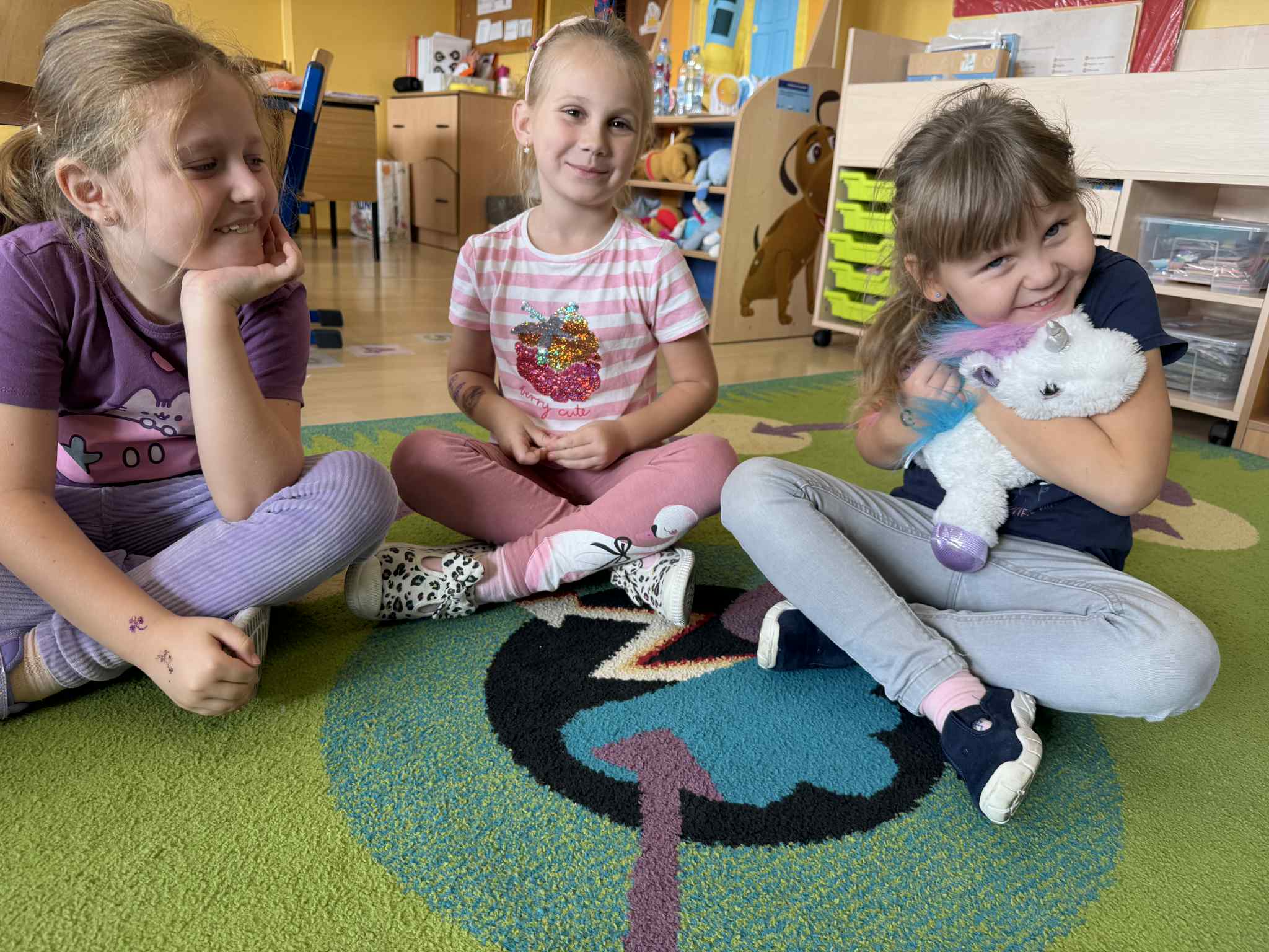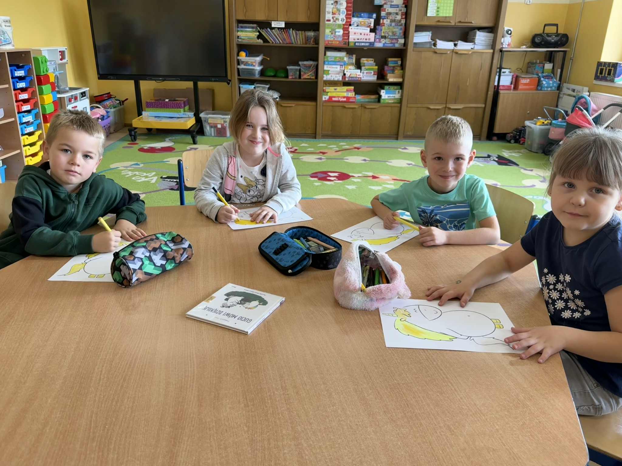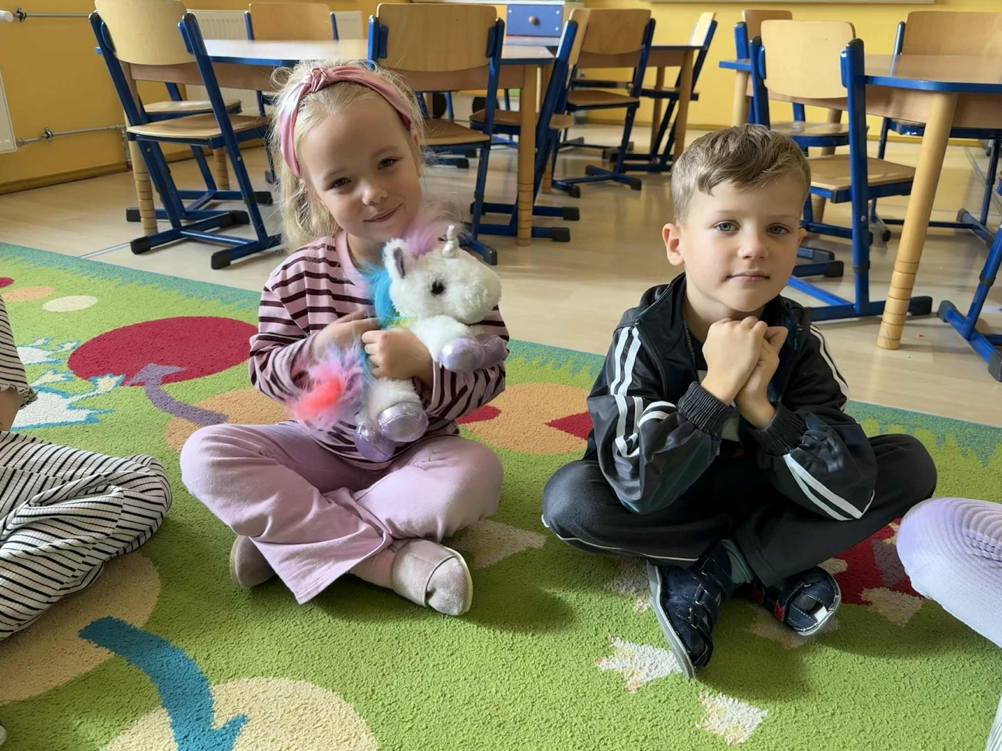 W roku szkolnym 2025/2026 grupa Pszczółki bierze udział w Międzynarodowym Projekcie Edukacyjnym "Kolorowe uczucia Gucia". Głównym założeniem projektu jest wspieranie rozwoju emocjonalnego dzieci, kształtowanie umiejętności rozpoznawania, nazywania i okazywania własnych emocji, dostrzegania ich u innych, a także budowania relacji opartych na wzajemnym szacunku i zrozumieniu. W realizacji tych zadań dzieciom towarzyszy Gucio - sympatyczny jednorożec, który jest głównym bohaterem książeczek. Dzieci chętnie przywitały się z Guciem i z zainteresowaniem wysłuchały opowiadania - „Gucio mówi dziękuję”. Po wysłuchaniu bajki omawiały emocje bohatera, rozwijając umiejętność rozpoznawania i nazywania uczuć, a także wykonały pracę plastyczną.