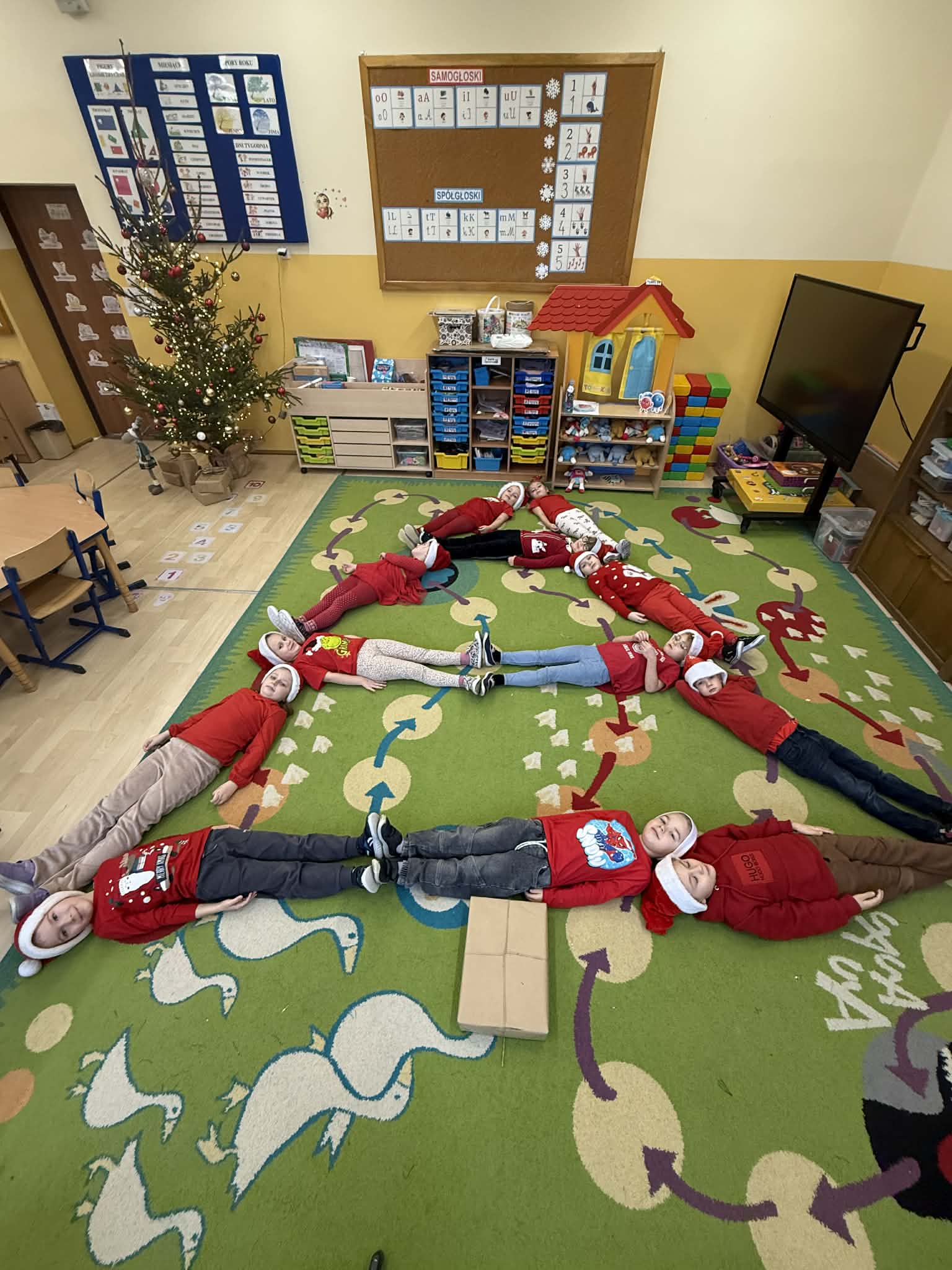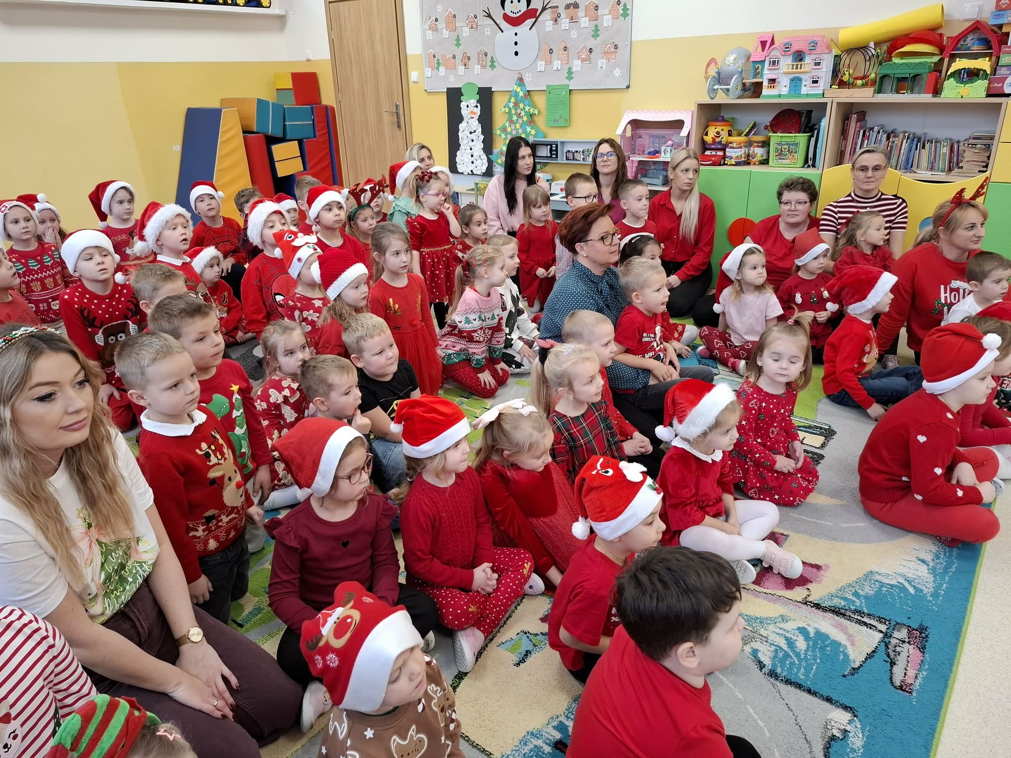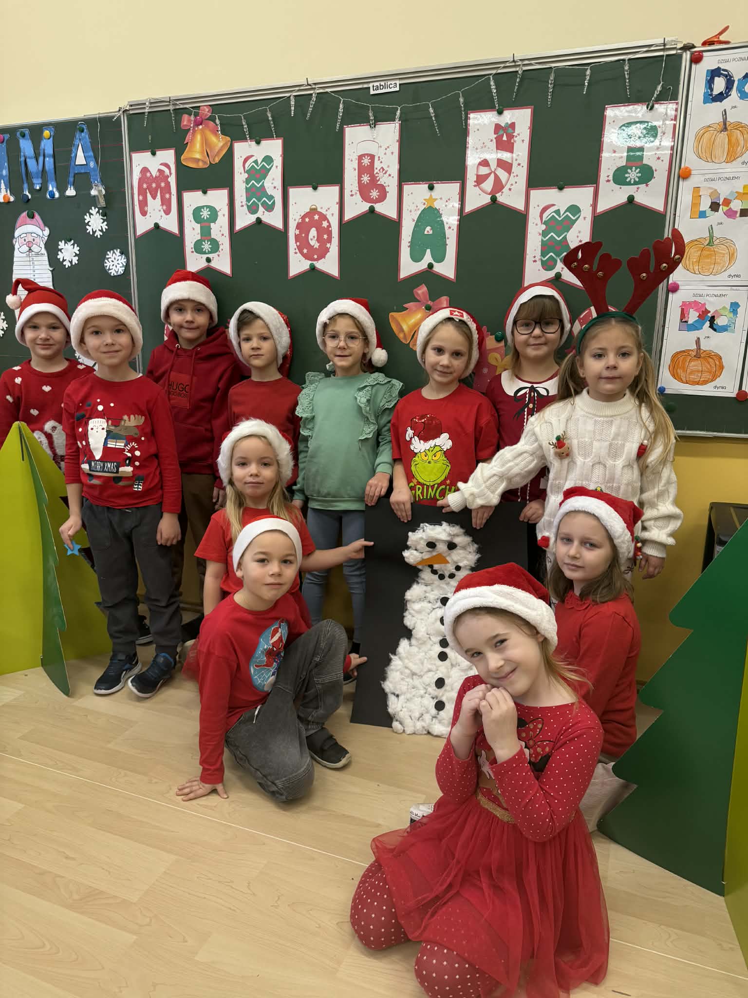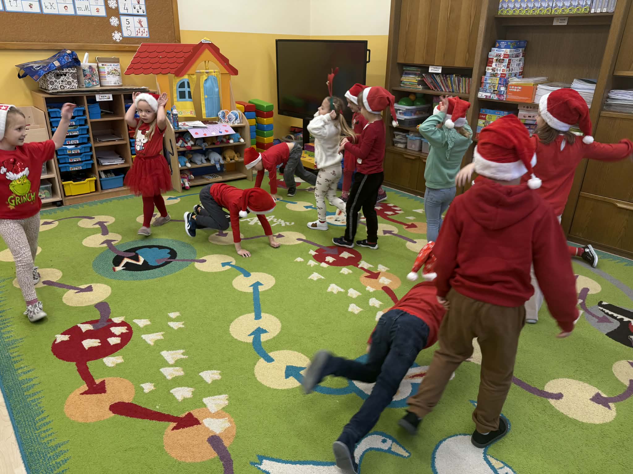 Tegoroczne Mikołajki były dla dzieci niezwykle ekscytujące. Choć zaplanowana gra terenowa odbyła się wyjątkowo w salach, zyskała nową, magiczną formę — nazwaliśmy ją „Mikołajkową Wyprawą po Skarby”. Okazało się, że sam Mikołaj zostawił w każdej sali specjalne zadania do wykonania. Dzieci z ogromnym zapałem podejmowały kolejne wyzwania: wykonywały zadania ruchowe, tworzyły pracę plastyczną dla Mikołaja, a także rozwiązywały świąteczne zagadki, które prowadziły je krok po kroku do kolejnych wskazówek. Po wykonaniu wszystkich zadań nadszedł najbardziej oczekiwany moment — spotkanie z Mikołajem. Dzieci z błyszczącymi oczami przywitały wyjątkowego gościa, a Mikołaj z radością wręczył każdej grupie świąteczny prezent. To był dzień pełen uśmiechów, niespodzianek i prawdziwej, mikołajkowej magii. ![]()