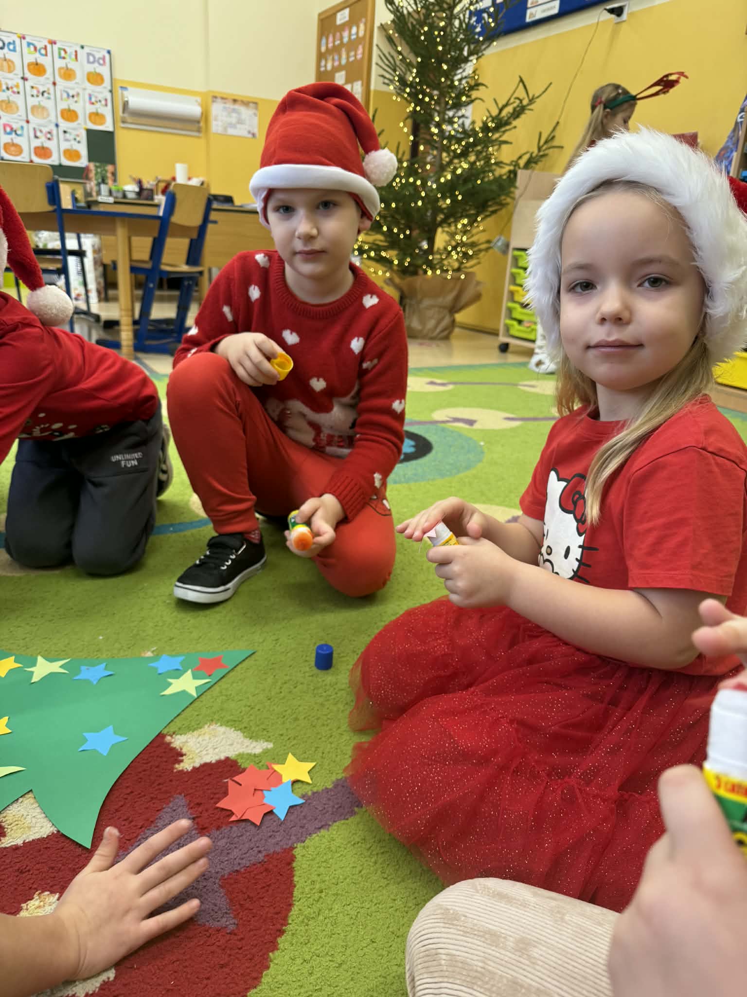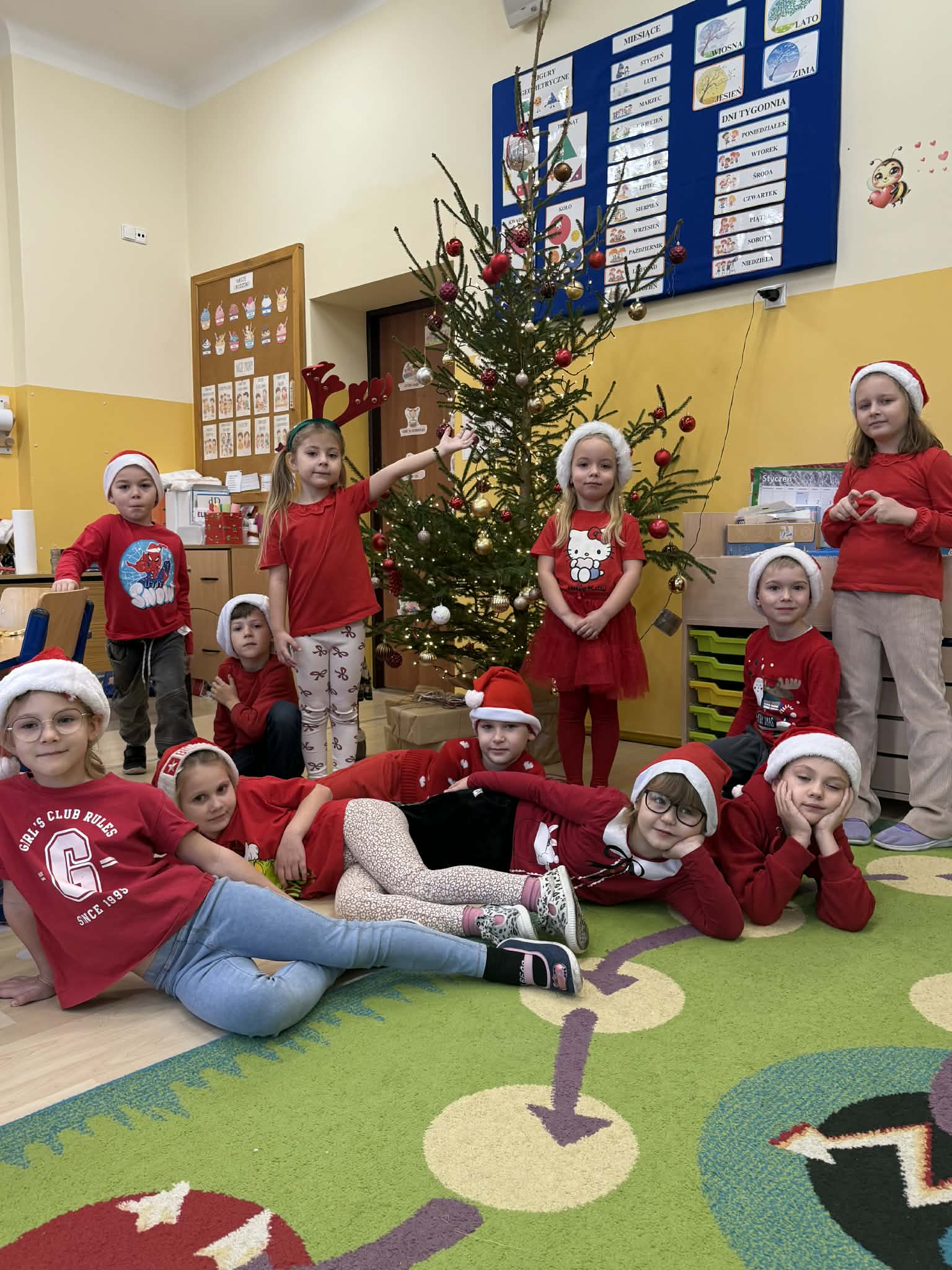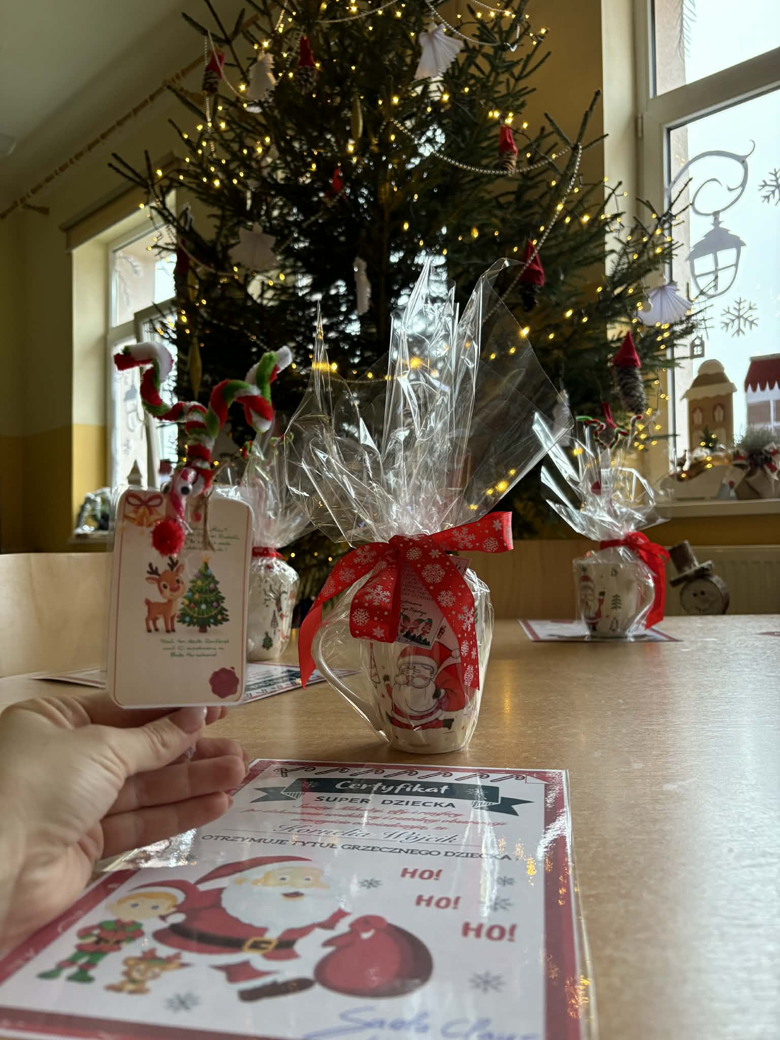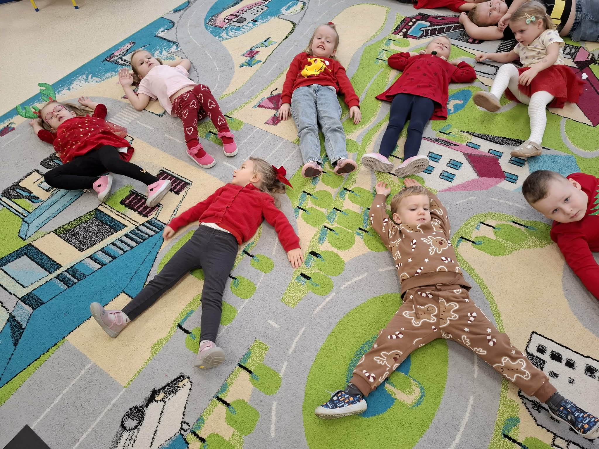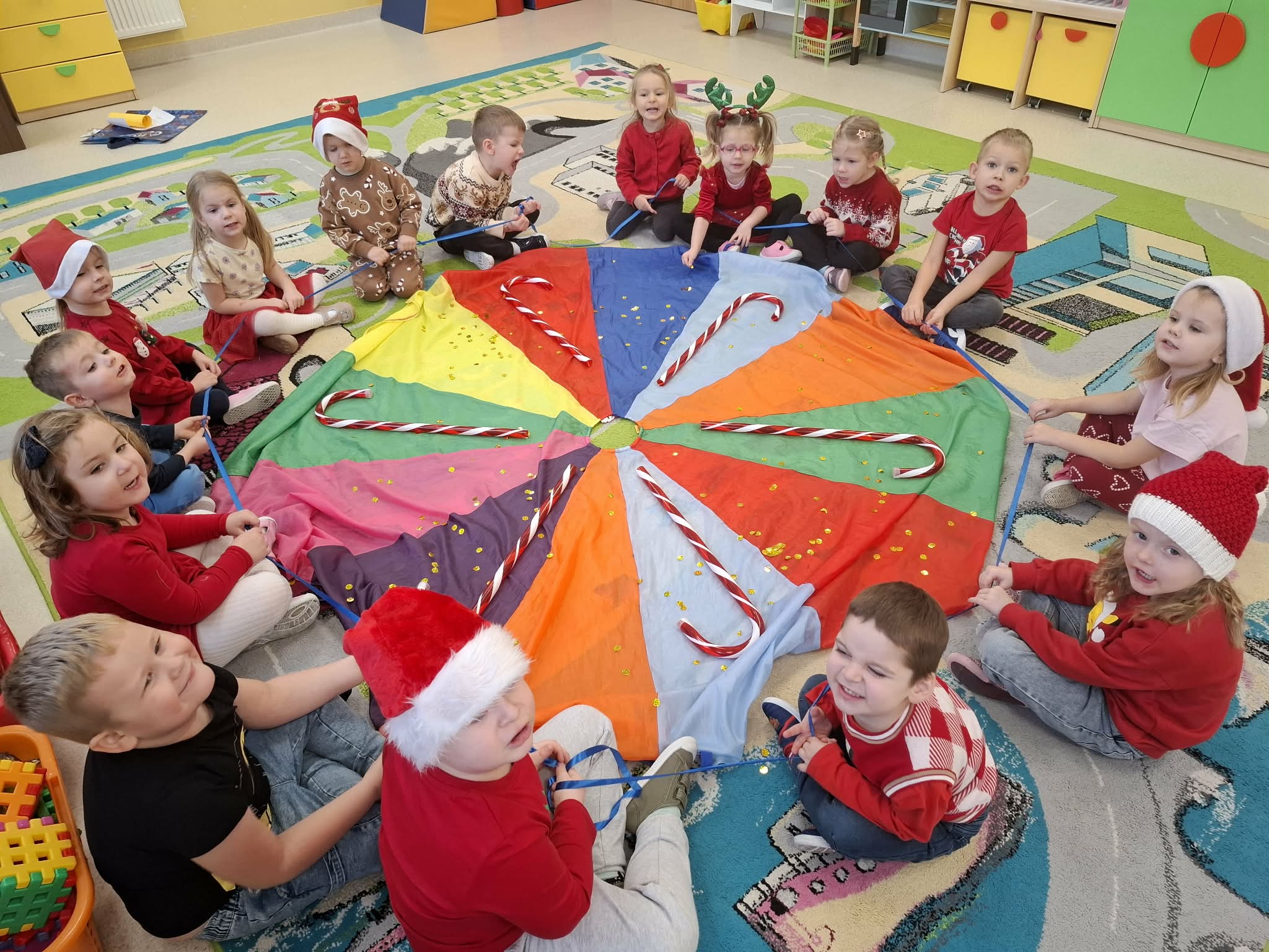 Tegoroczne Mikołajki były dla dzieci niezwykle ekscytujące. Choć zaplanowana gra terenowa odbyła się wyjątkowo w salach, zyskała nową, magiczną formę — nazwaliśmy ją „Mikołajkową Wyprawą po Skarby”. Okazało się, że sam Mikołaj zostawił w każdej sali specjalne zadania do wykonania. Dzieci z ogromnym zapałem podejmowały kolejne wyzwania: wykonywały zadania ruchowe, tworzyły pracę plastyczną dla Mikołaja, a także rozwiązywały świąteczne zagadki, które prowadziły je krok po kroku do kolejnych wskazówek. Po wykonaniu wszystkich zadań nadszedł najbardziej oczekiwany moment — spotkanie z Mikołajem. Dzieci z błyszczącymi oczami przywitały wyjątkowego gościa, a Mikołaj z radością wręczył każdej grupie świąteczny prezent. To był dzień pełen uśmiechów, niespodzianek i prawdziwej, mikołajkowej magii. ![]()