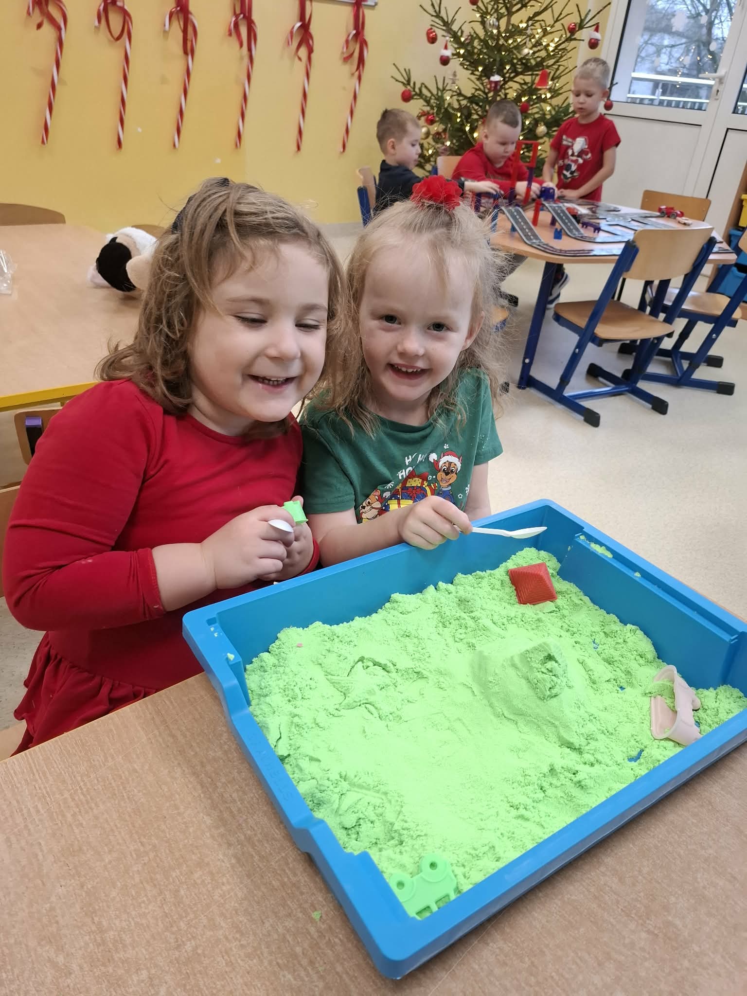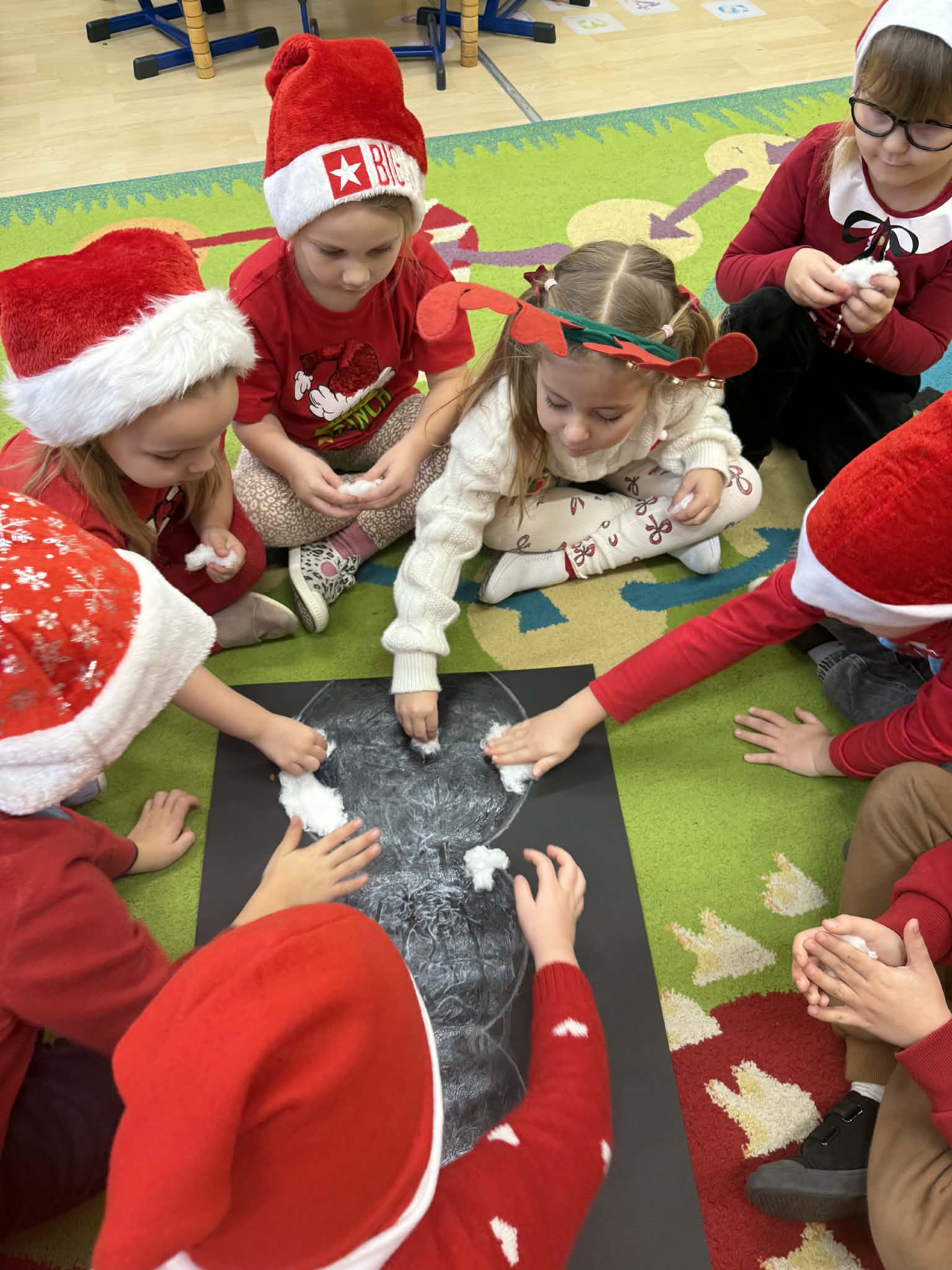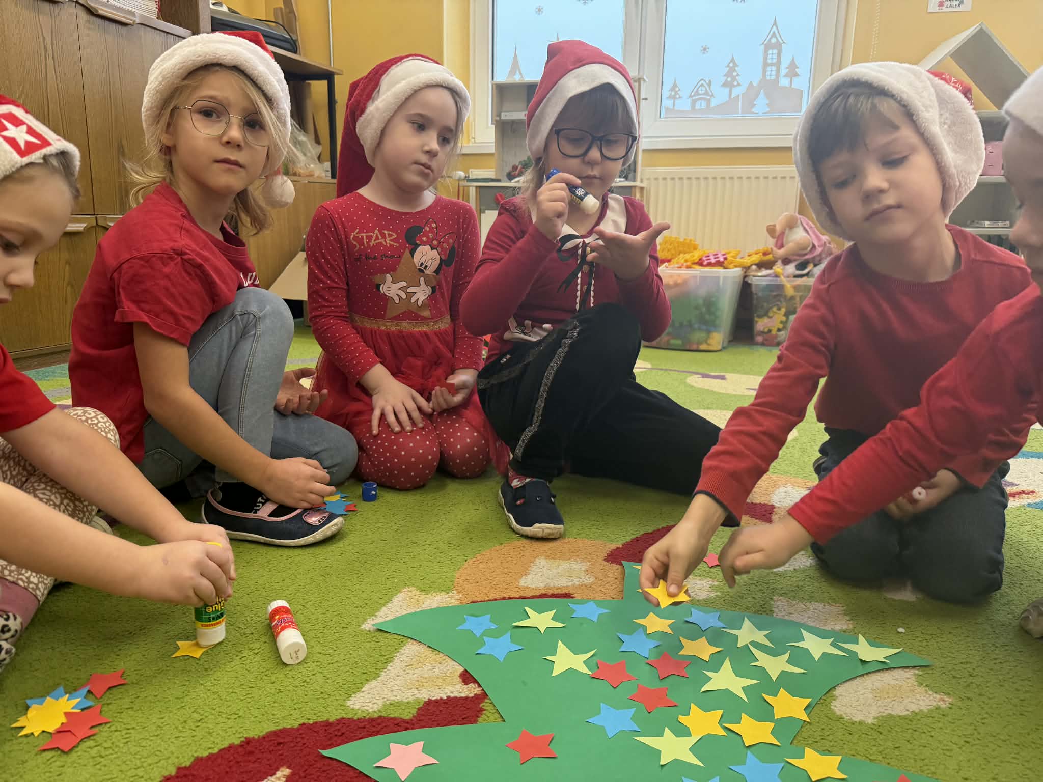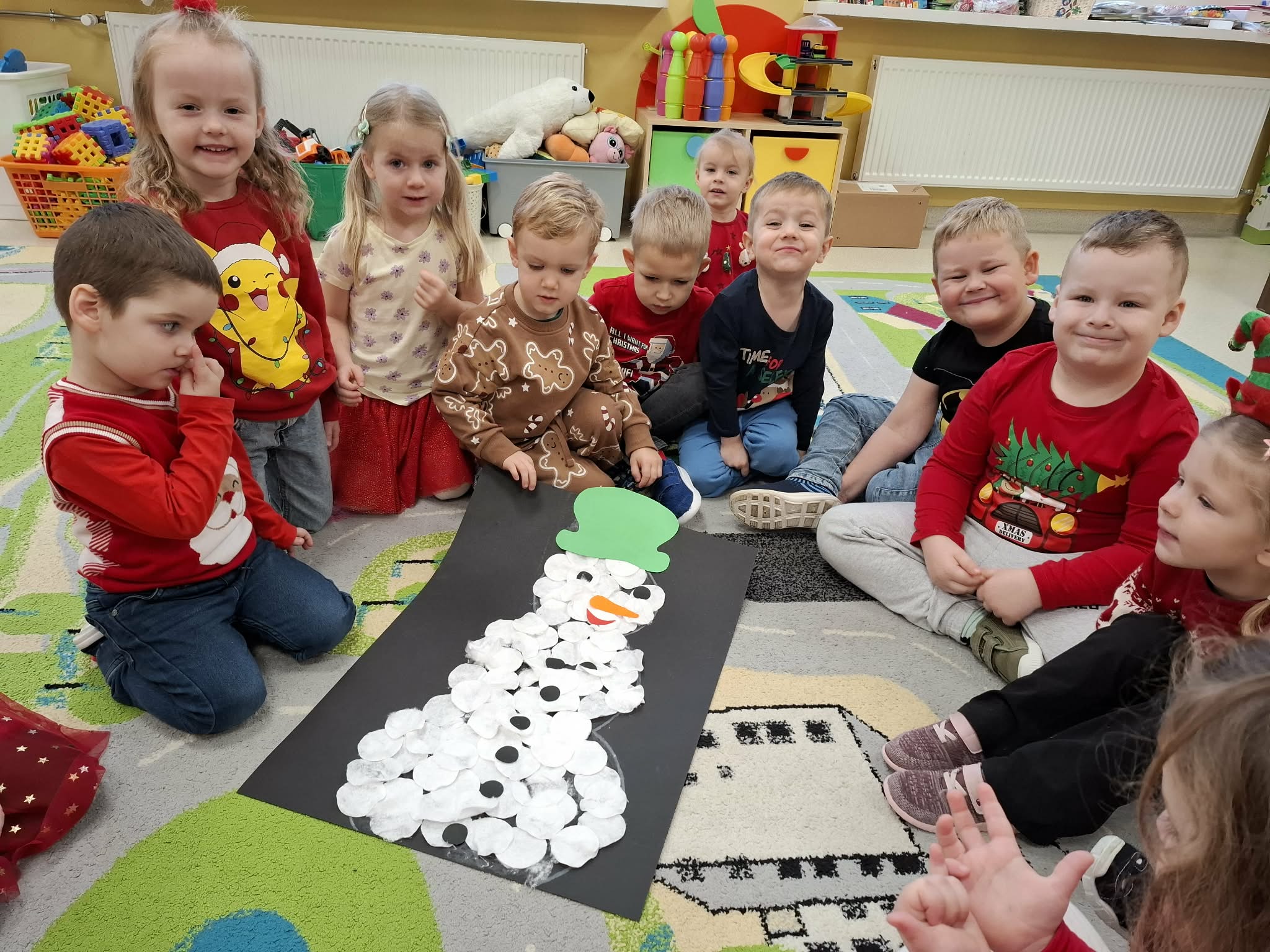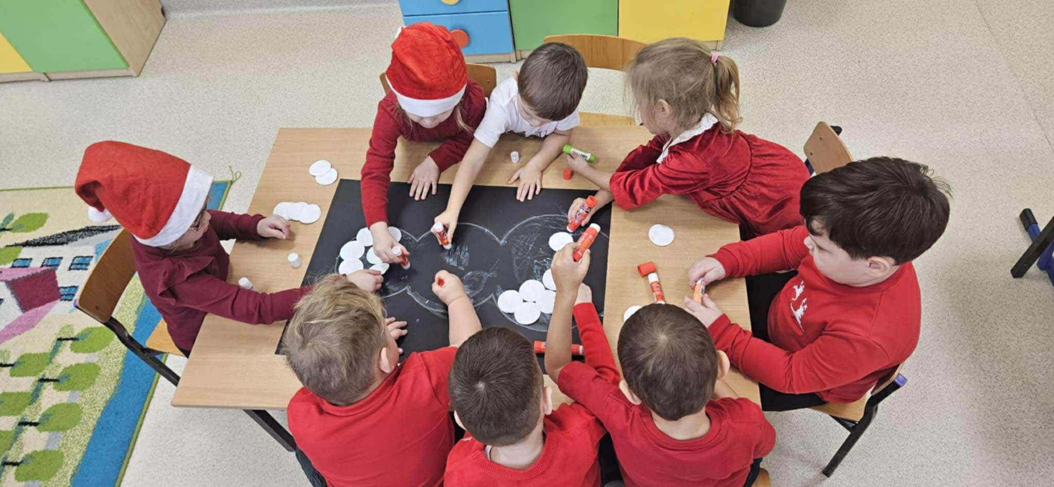 Tegoroczne Mikołajki były dla dzieci niezwykle ekscytujące. Choć zaplanowana gra terenowa odbyła się wyjątkowo w salach, zyskała nową, magiczną formę — nazwaliśmy ją „Mikołajkową Wyprawą po Skarby”. Okazało się, że sam Mikołaj zostawił w każdej sali specjalne zadania do wykonania. Dzieci z ogromnym zapałem podejmowały kolejne wyzwania: wykonywały zadania ruchowe, tworzyły pracę plastyczną dla Mikołaja, a także rozwiązywały świąteczne zagadki, które prowadziły je krok po kroku do kolejnych wskazówek. Po wykonaniu wszystkich zadań nadszedł najbardziej oczekiwany moment — spotkanie z Mikołajem. Dzieci z błyszczącymi oczami przywitały wyjątkowego gościa, a Mikołaj z radością wręczył każdej grupie świąteczny prezent. To był dzień pełen uśmiechów, niespodzianek i prawdziwej, mikołajkowej magii. ![]()