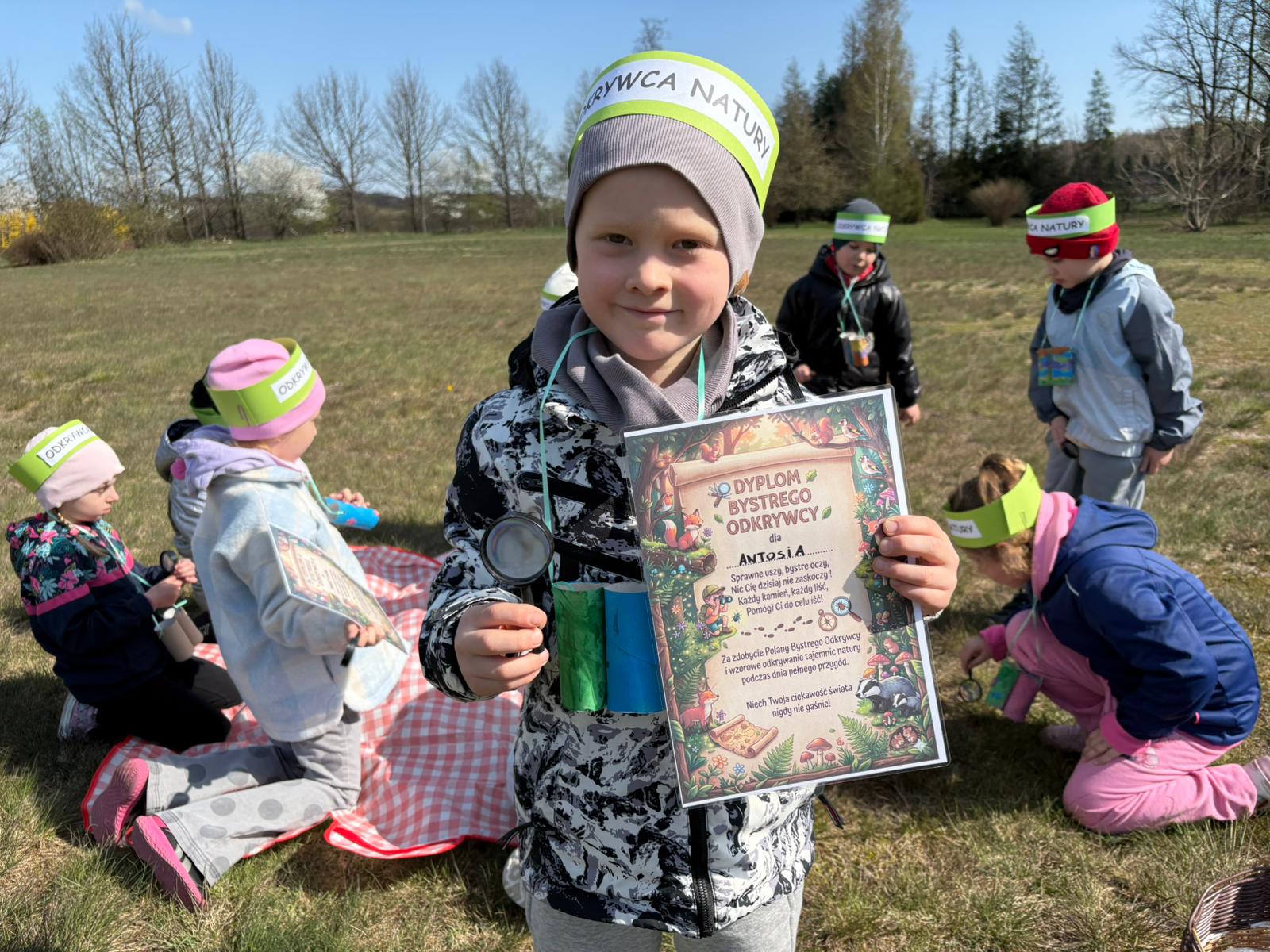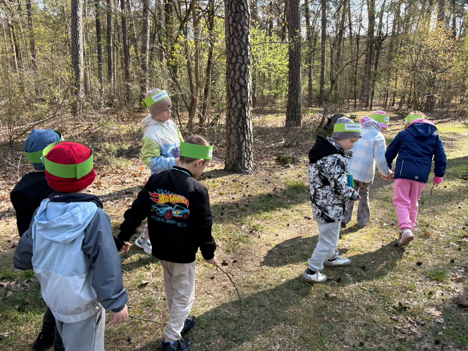 Ostatnie dni upłynęły naszym Misiom pod znakiem wielkiej, leśnej przygody, która na długo zapadnie w ich pamięci. Wszystko zaczęło się od starannych przygotowań w sali, gdzie mali rzemieślnicy własnoręcznie stworzyli profesjonalne lornetki, by chwilę później – wyposażeni dodatkowo w lupy i ogromną dawkę ciekawości – wyruszyć na podbój prawdziwego lasu. Gdy dotarliśmy na Polanę Bystrego Odkrywcy, czekała tam na nas niezwykła niespodzianka: list od samego Strażnika Lasu! Ta tajemnicza wiadomość zamieniła nasz spacer w ważną misję, polegającą na odnalezieniu ukrytych wśród mchu i paproci przyrodniczych skarbów.