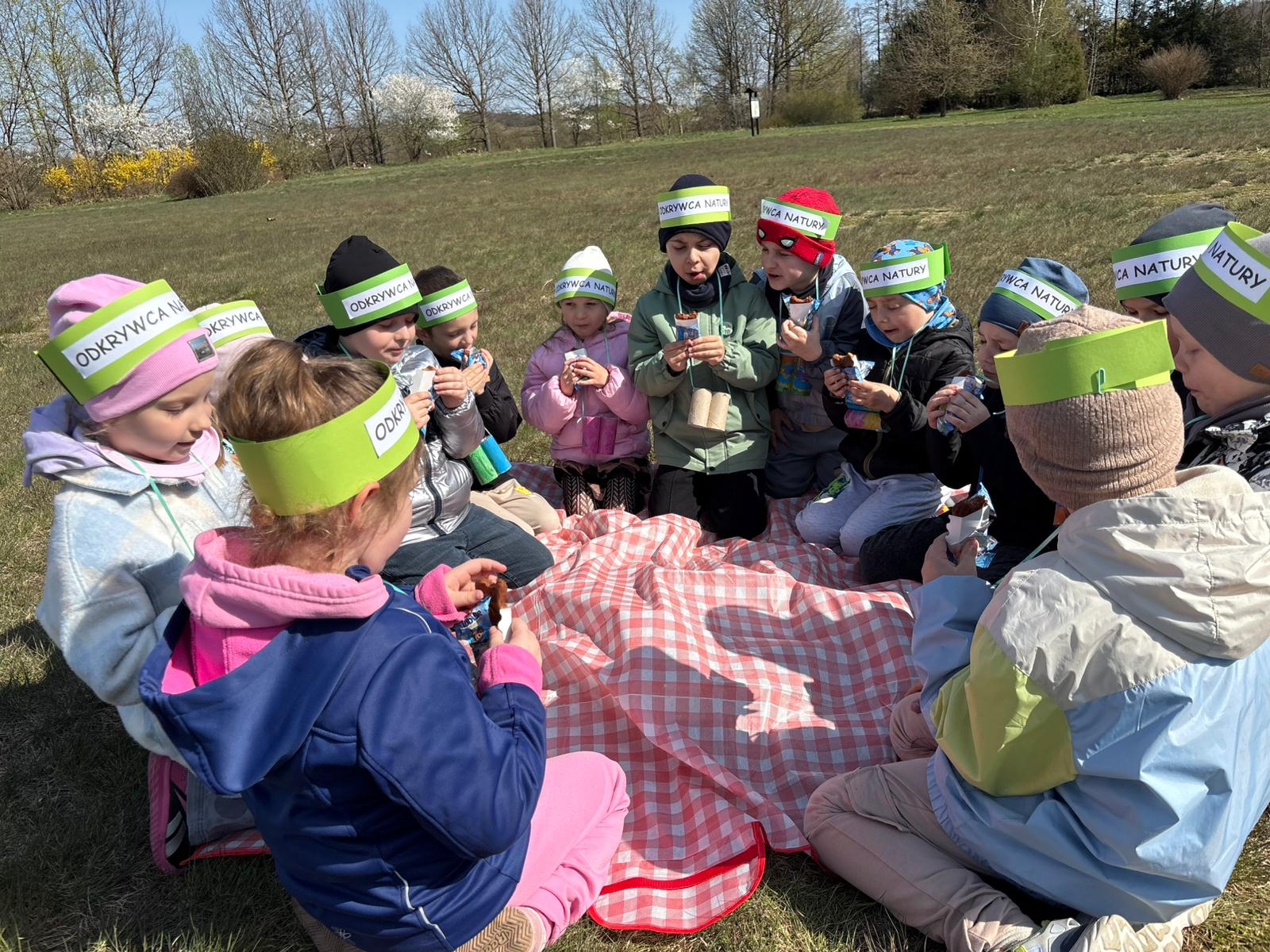 Dzieci z ogromnym zaangażowaniem przeczesywały leśne gęstwiny, wypatrując przez swoje lupy najmniejszych detali natury. Z zebranych ziaren, szyszek, kawałków kory i patyków, Misie wspólnie wyczarowały coś wyjątkowego – bezpieczny i przytulny dom dla owadów, ucząc się przy tym troski o najmniejszych mieszkańców lasu. Po tak intensywnej pracy nadszedł czas na radosny odpoczynek. Na polanie w pobliżu lasu rozłożyliśmy koc, a wspólny piknik w otoczeniu kojącego szumu drzew i śpiewu ptaków stał się idealnym zwieńczeniem tej wyprawy. Było pełno śmiechu, słońca i prawdziwej, dziecięcej magii odkrywania świata!