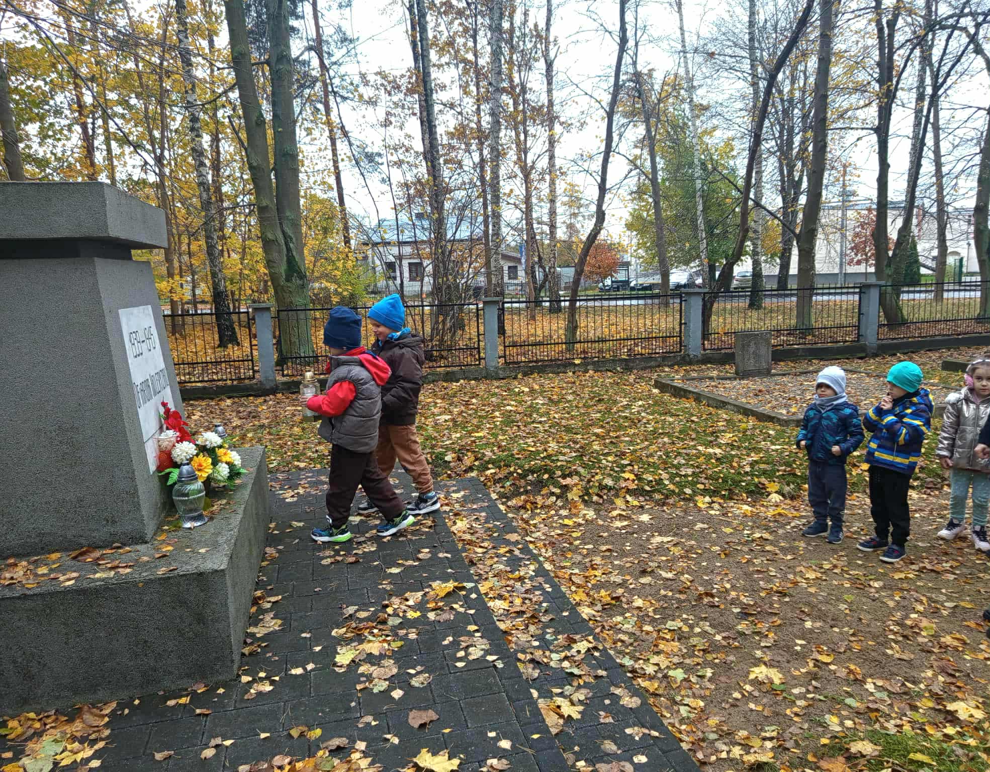 Maluszki z grup 3-, 4- i 5-latków udały się na Grób Nieznanego Żołnierza znajdujący się w pobliżu szkoły. Tam, w skupieniu i z powagą, zapaliły znicze i oddały hołd bohaterom, którzy walczyli za naszą ojczyznę.