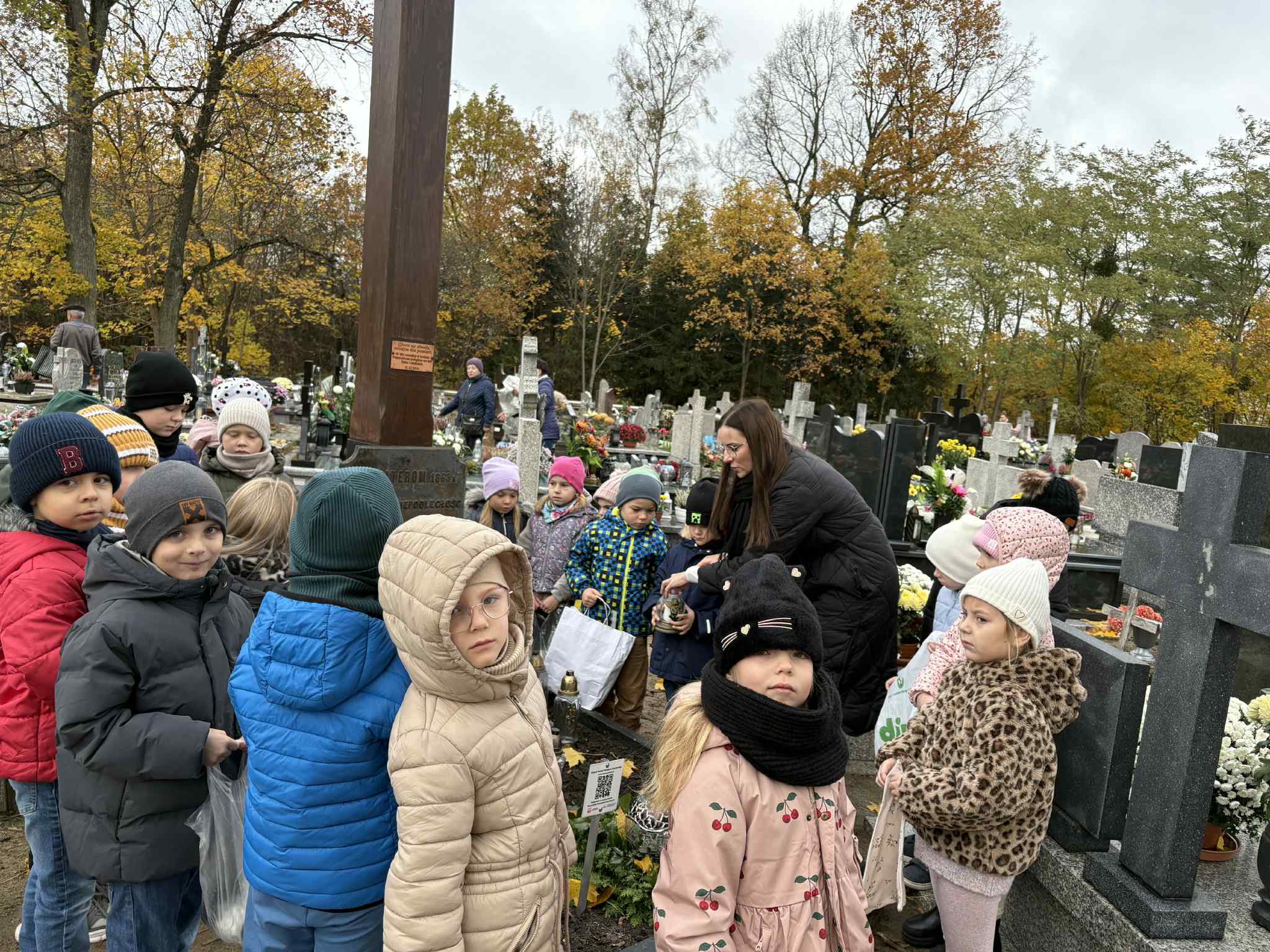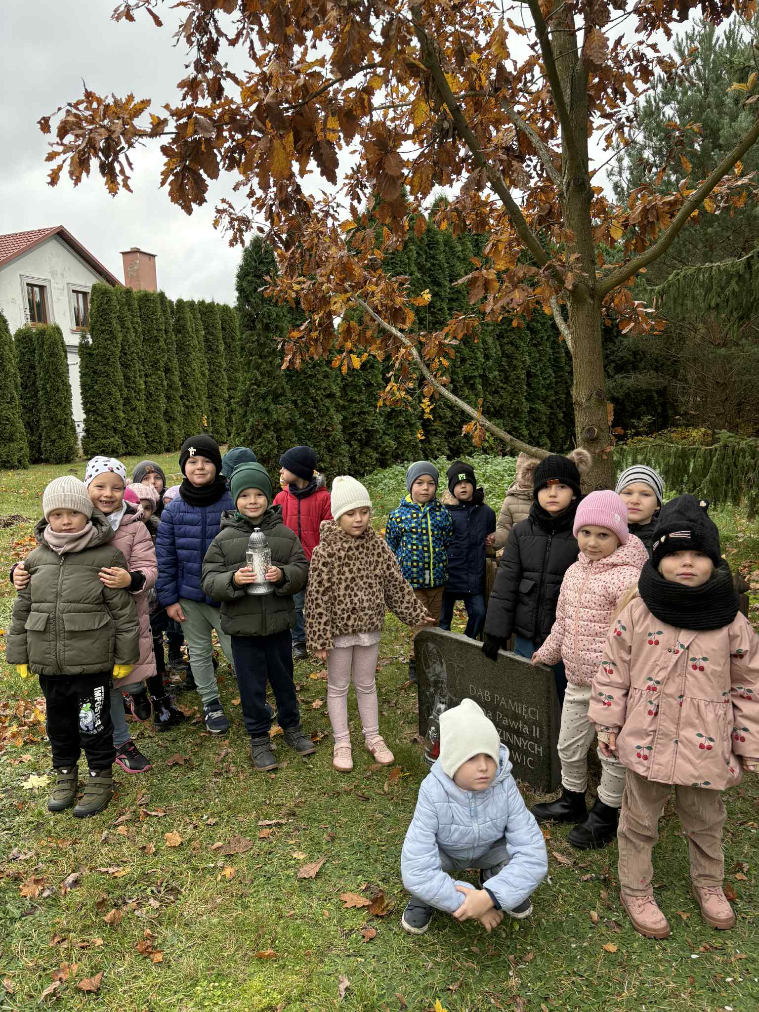 Tuż przed Dniem Wszystkich Świętych dzieci z naszego przedszkola wzięły udział w pięknej i wzruszającej akcji upamiętnienia zmarłych.