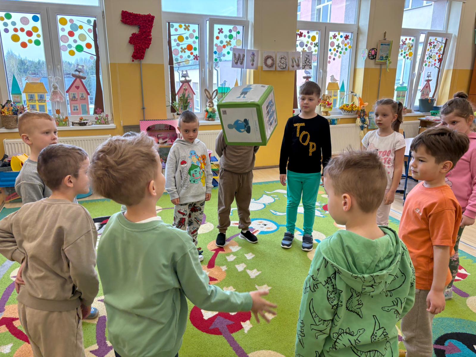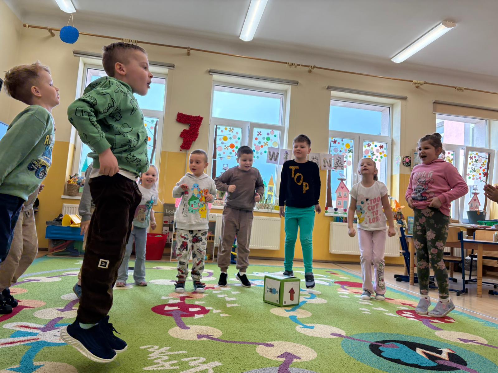 • Ruch to zdrowie i nauka!Nasza kostka edukacyjna to prawdziwy hit zabaw ruchowych! Każdy rzut to nowe zadanie i okazja do powtórzenia zwrotów w pełnym biegu.