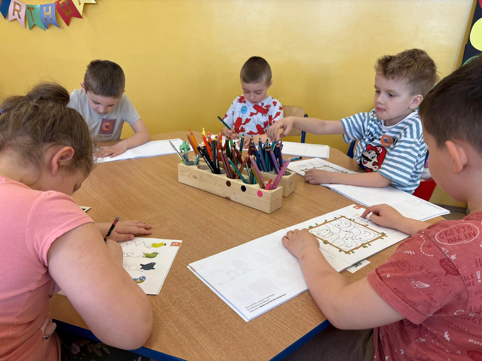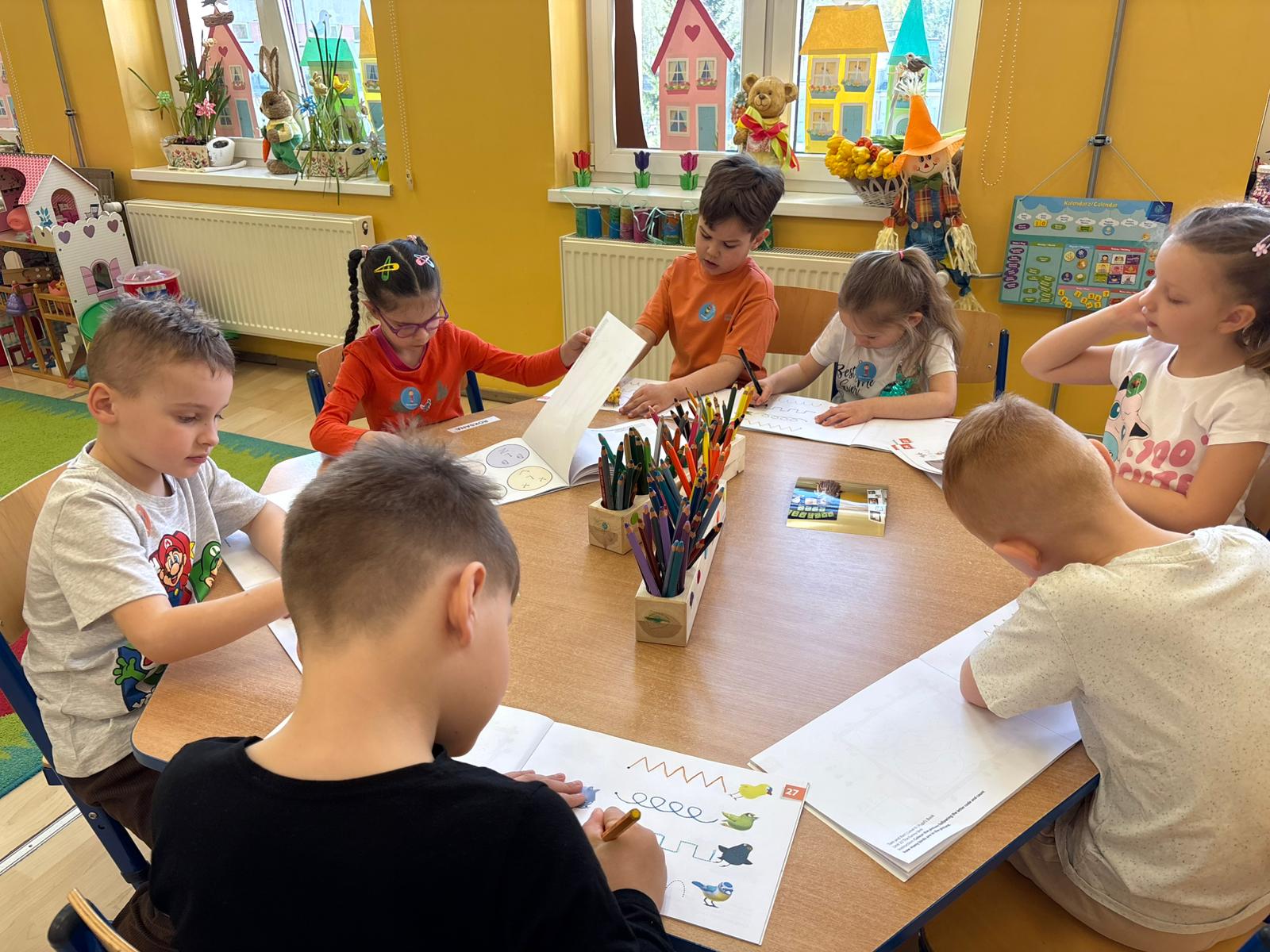 • Aktywne karty pracy: Dzieci na bieżąco utrwalają zdobytą wiedzę, pracując z autorskimi kartami pracy, które rozwijają ich spostrzegawczość i zdolności manualne.