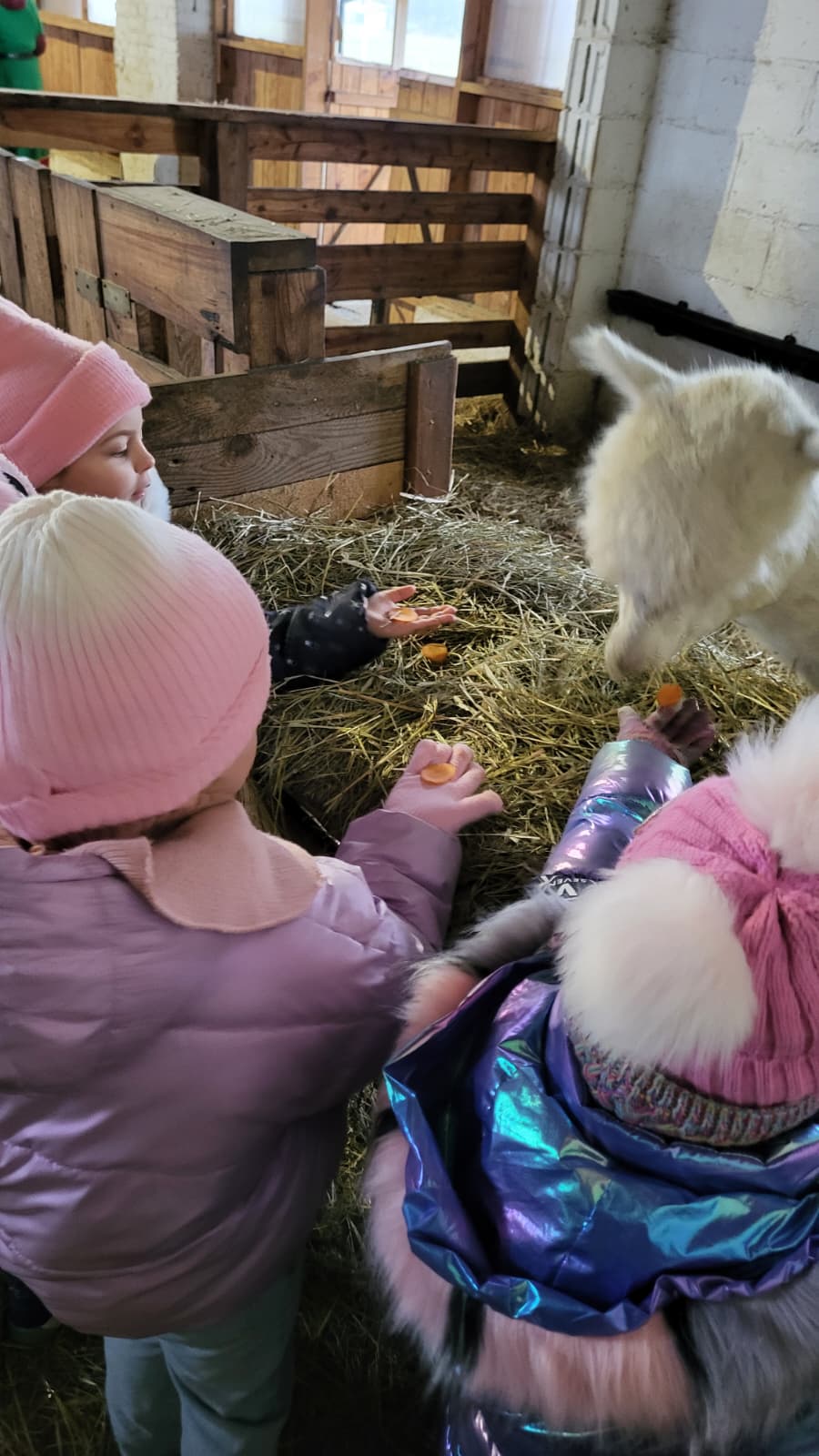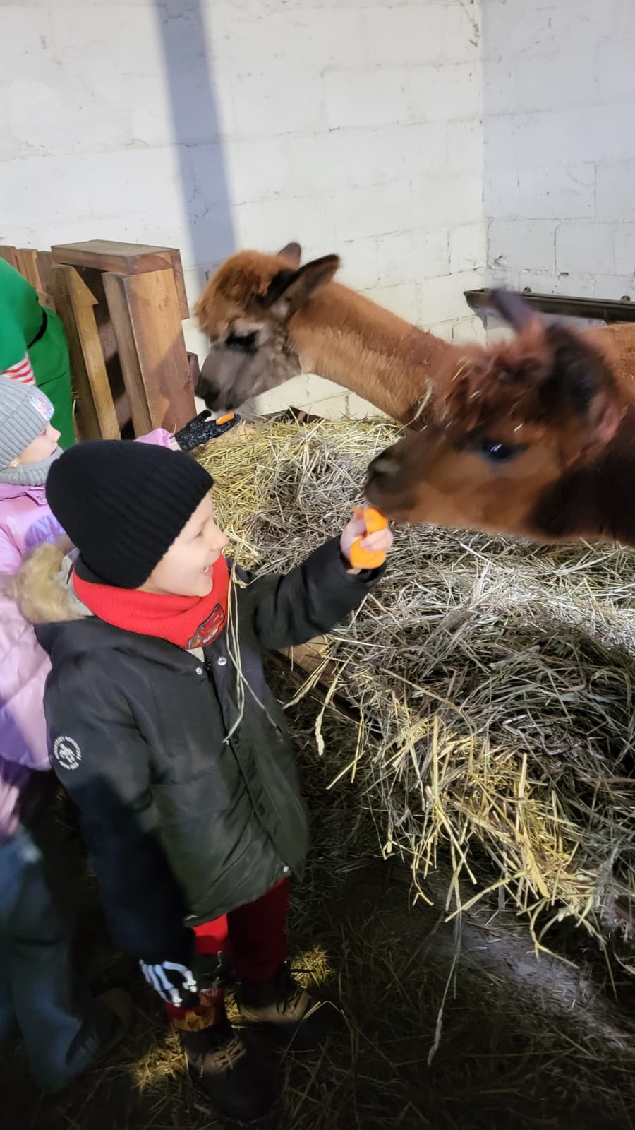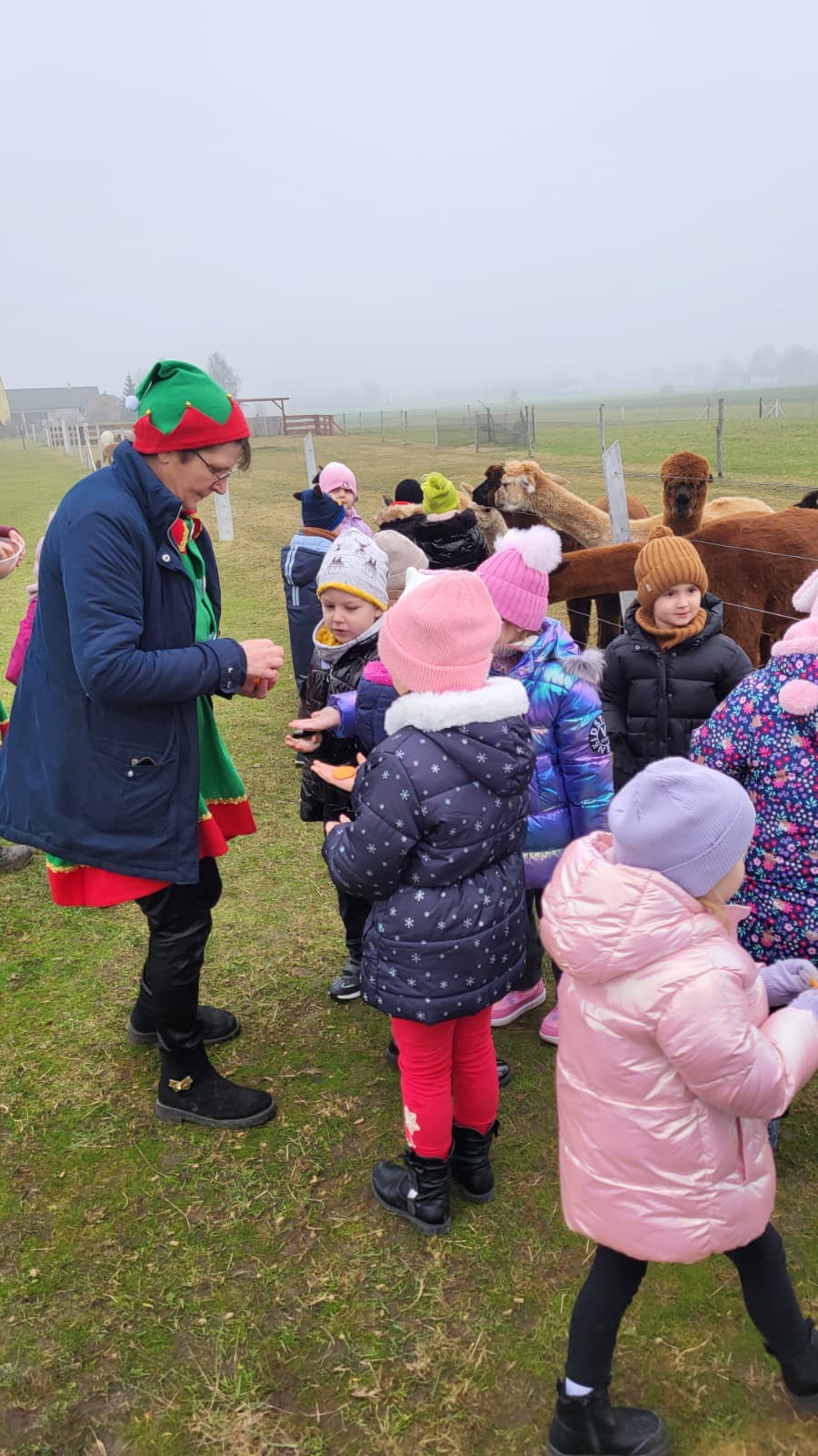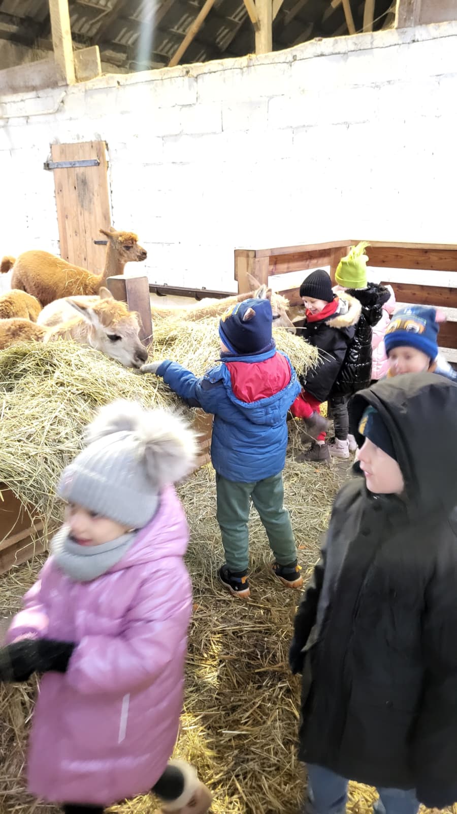 Było mnóstwo przytulania, karmienia i radosnych uśmiechów. Te puszyste stworzenia skradły nasze serca swoją łagodnością! Dzieci dowiedziały się wielu ciekawostek o życiu alpak, a świąteczna atmosfera sprawiła, że ten dzień zapamiętamy na bardzo długo.