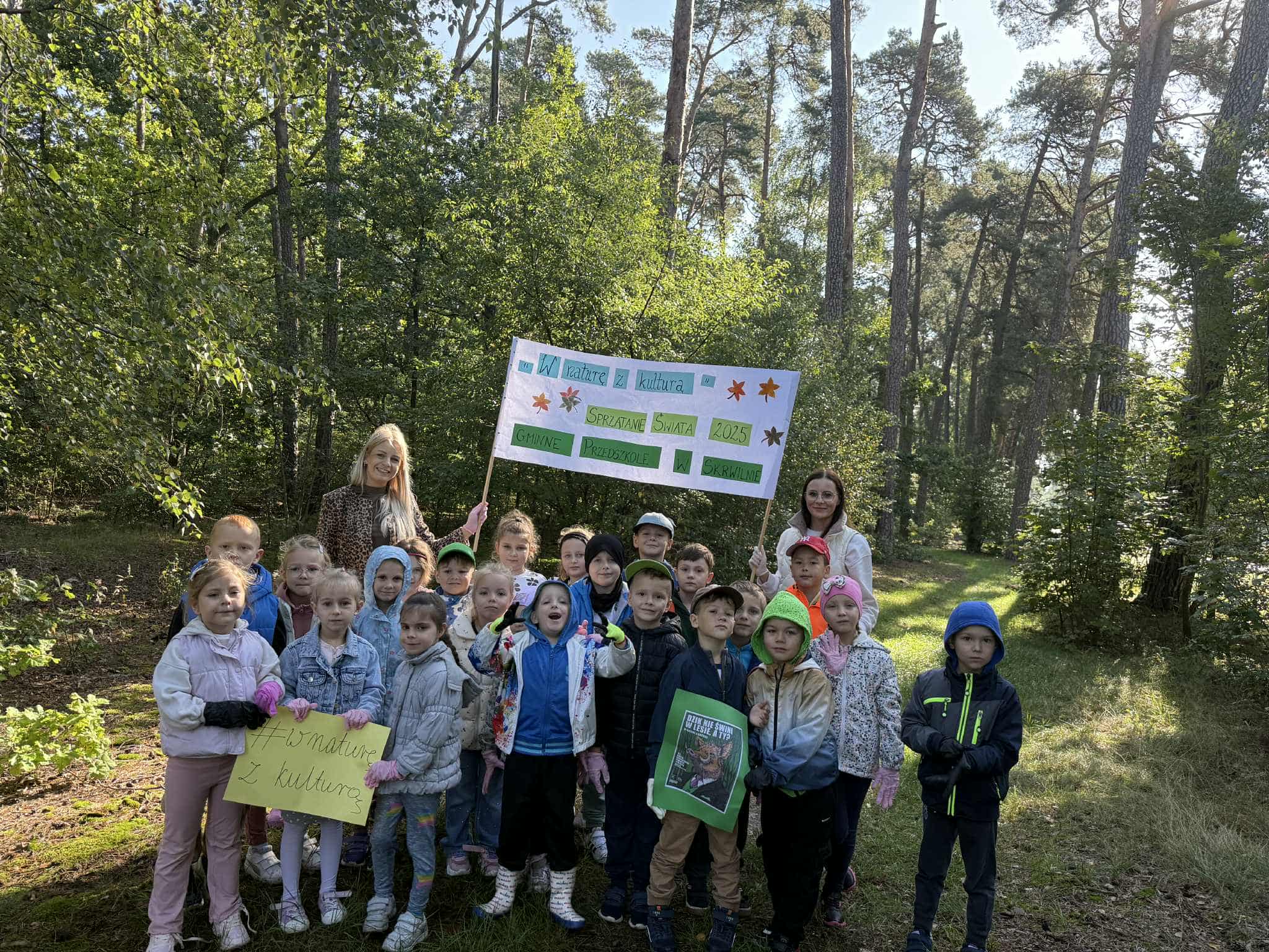 Akcja "W naturę z kulturą" jest częścią ogólnopolskiej inicjatywy "Sprzątania Świata". Wszystkie grupy z aktywnie włączyły się w wielkie porządki wokół naszego przedszkola. Z uśmiechem i ogromnym zaangażowaniem dzieci zbierały śmieci, ucząc się, jak ważne jest dbanie o środowisko oraz naszą wspólną planetę. To najlepszy sposób, by już od najmłodszych lat kształtować postawy proekologiczne i poczucie odpowiedzialności za naturę.