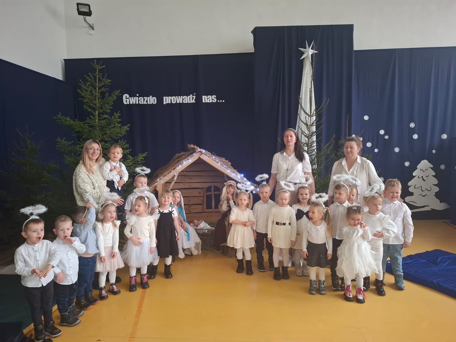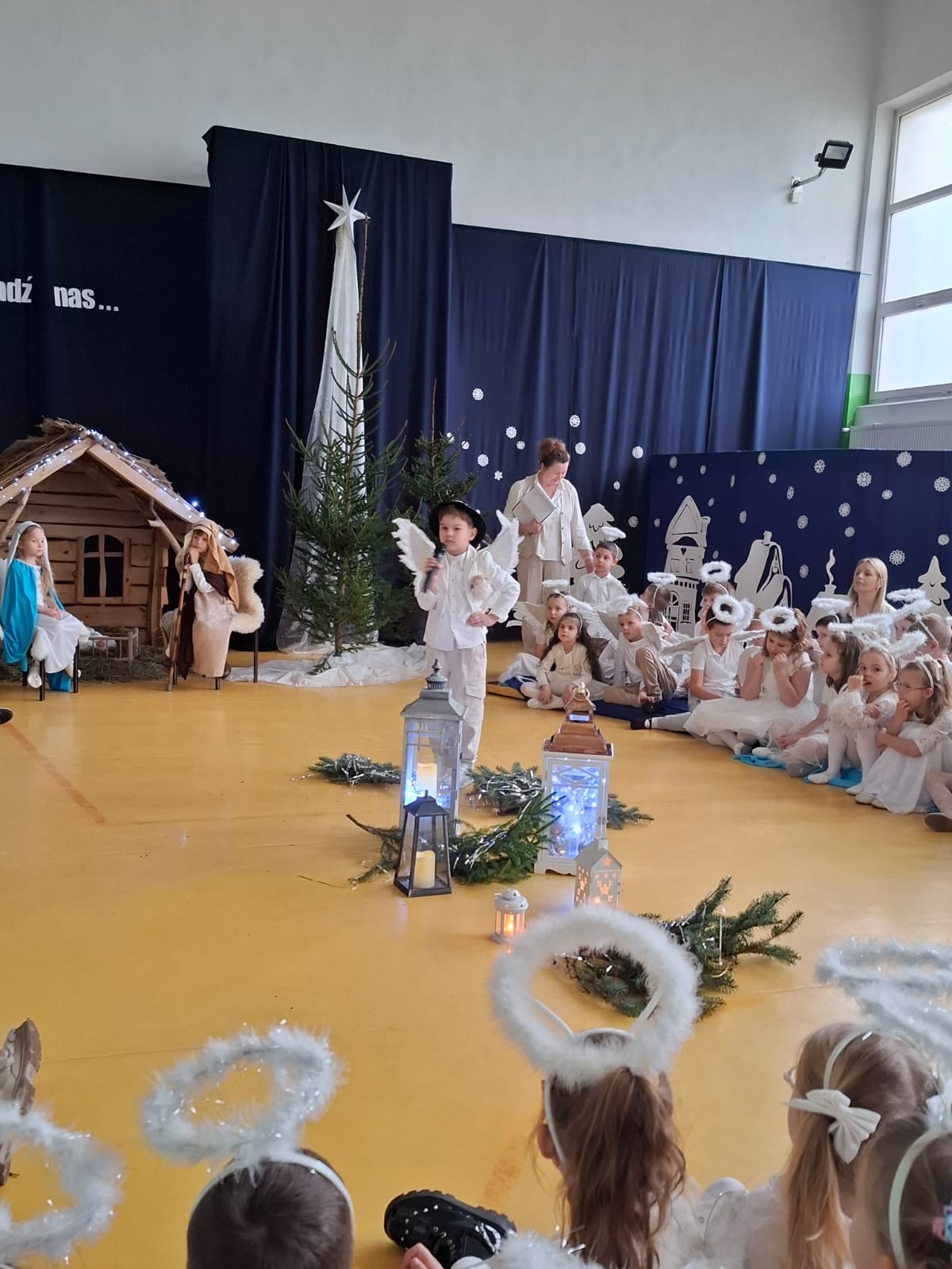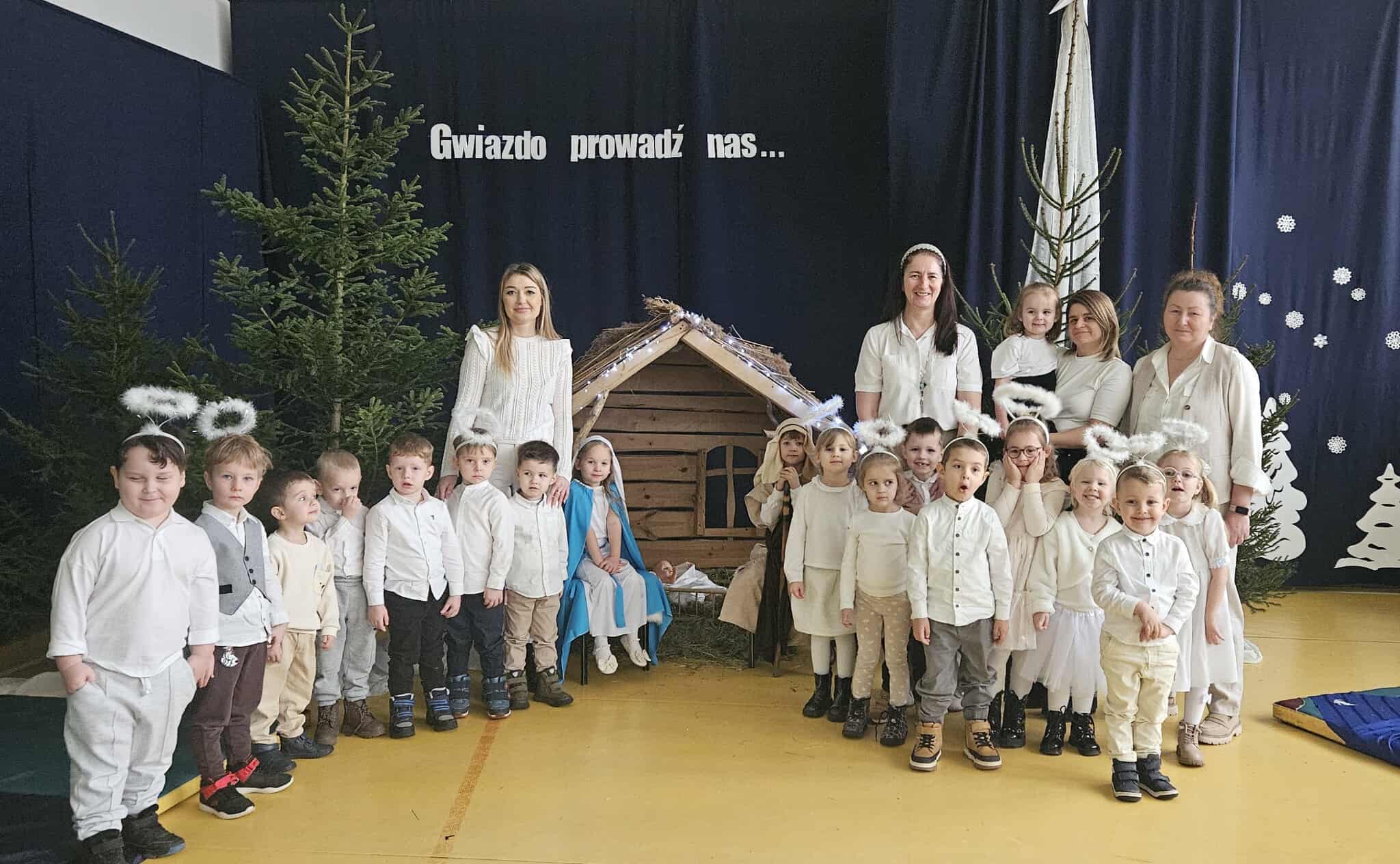 Przedszkolaki ze Skrwilna zaprosiły do wspólnego świętowania dzieci wraz z nauczycielami z Okalewa i Skudzaw. Tego dnia wspólnie zaśpiewały najpiękniejsze kolędy, oraz poznały historię narodzin Jezusa tworząc magiczną atmosferę świątecznej zadumy. Maluchy były ubrane w anielskie stroje, a ich uśmiechy i śpiew rozjaśniały całą przestrzeń przedszkola. To piękna tradycja, która na pewno pozostanie w pamięci na długo!