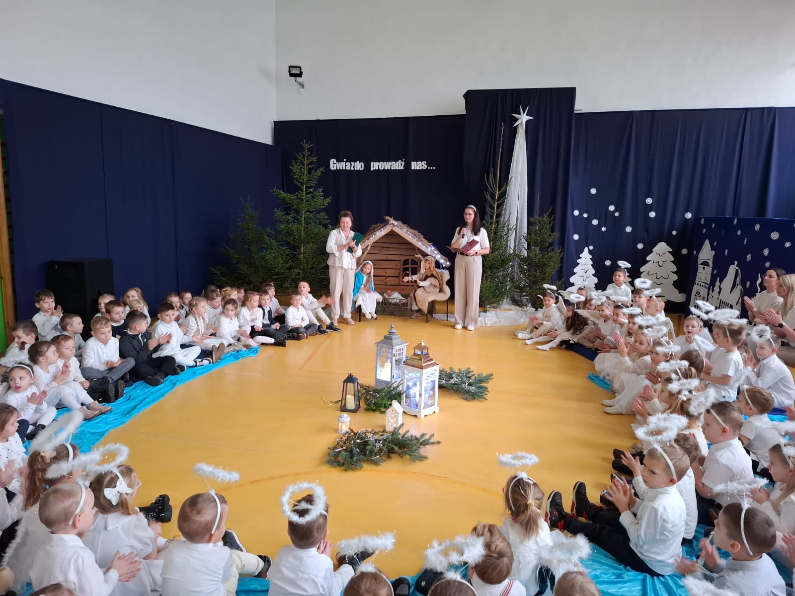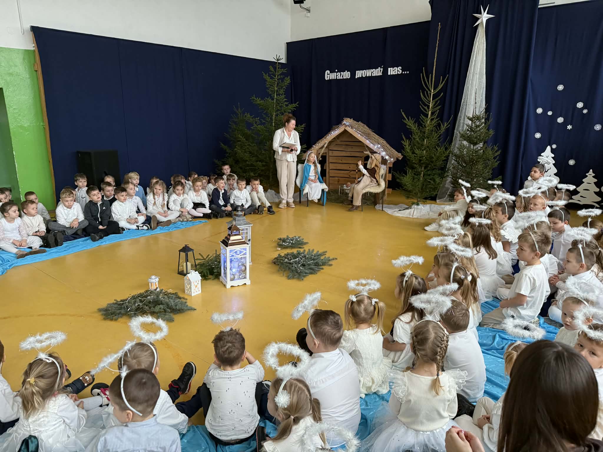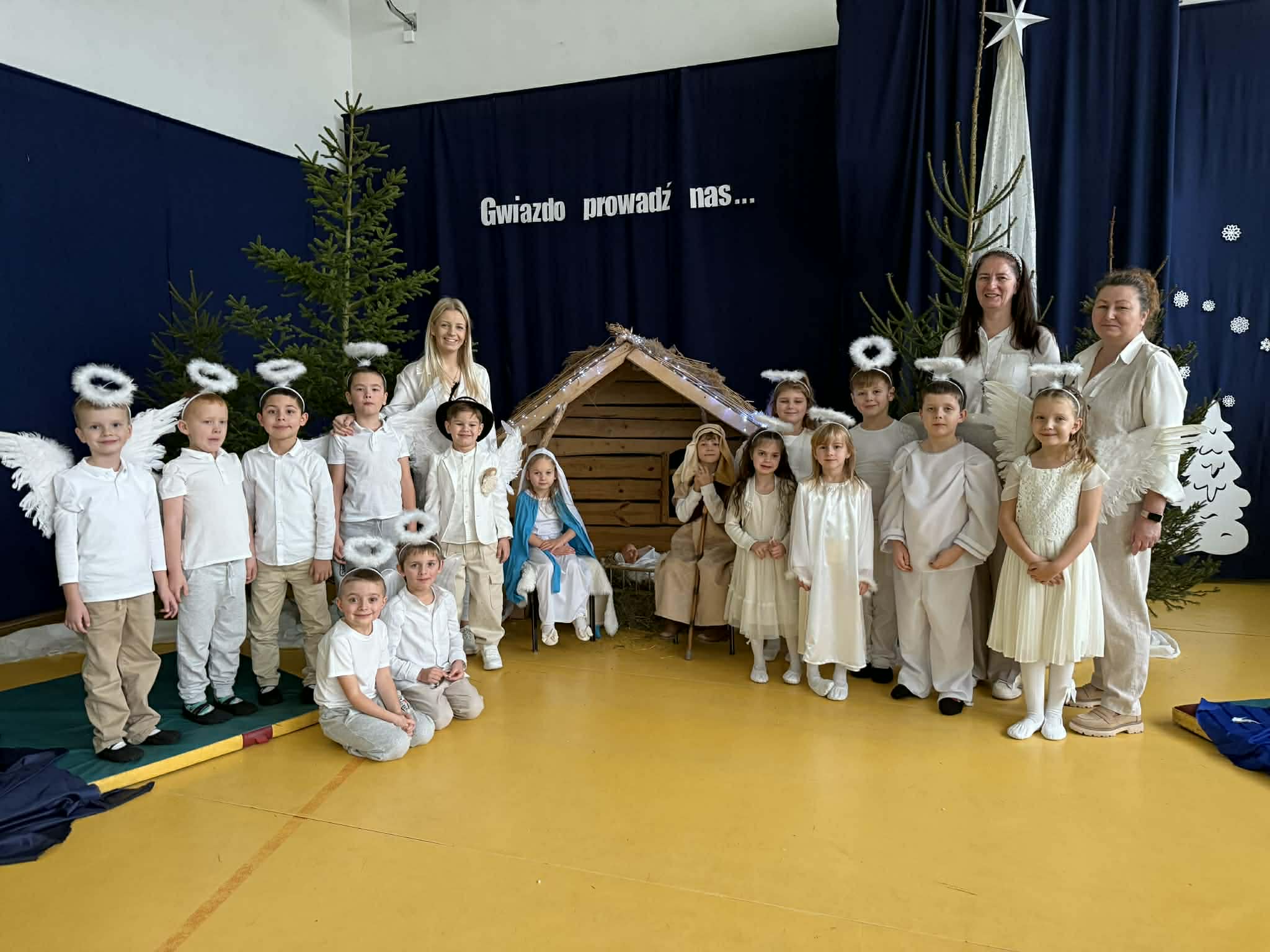 Przedszkolaki ze Skrwilna zaprosiły do wspólnego świętowania dzieci wraz z nauczycielami z Okalewa i Skudzaw. Tego dnia wspólnie zaśpiewały najpiękniejsze kolędy, oraz poznały historię narodzin Jezusa tworząc magiczną atmosferę świątecznej zadumy. Maluchy były ubrane w anielskie stroje, a ich uśmiechy i śpiew rozjaśniały całą przestrzeń przedszkola. To piękna tradycja, która na pewno pozostanie w pamięci na długo!