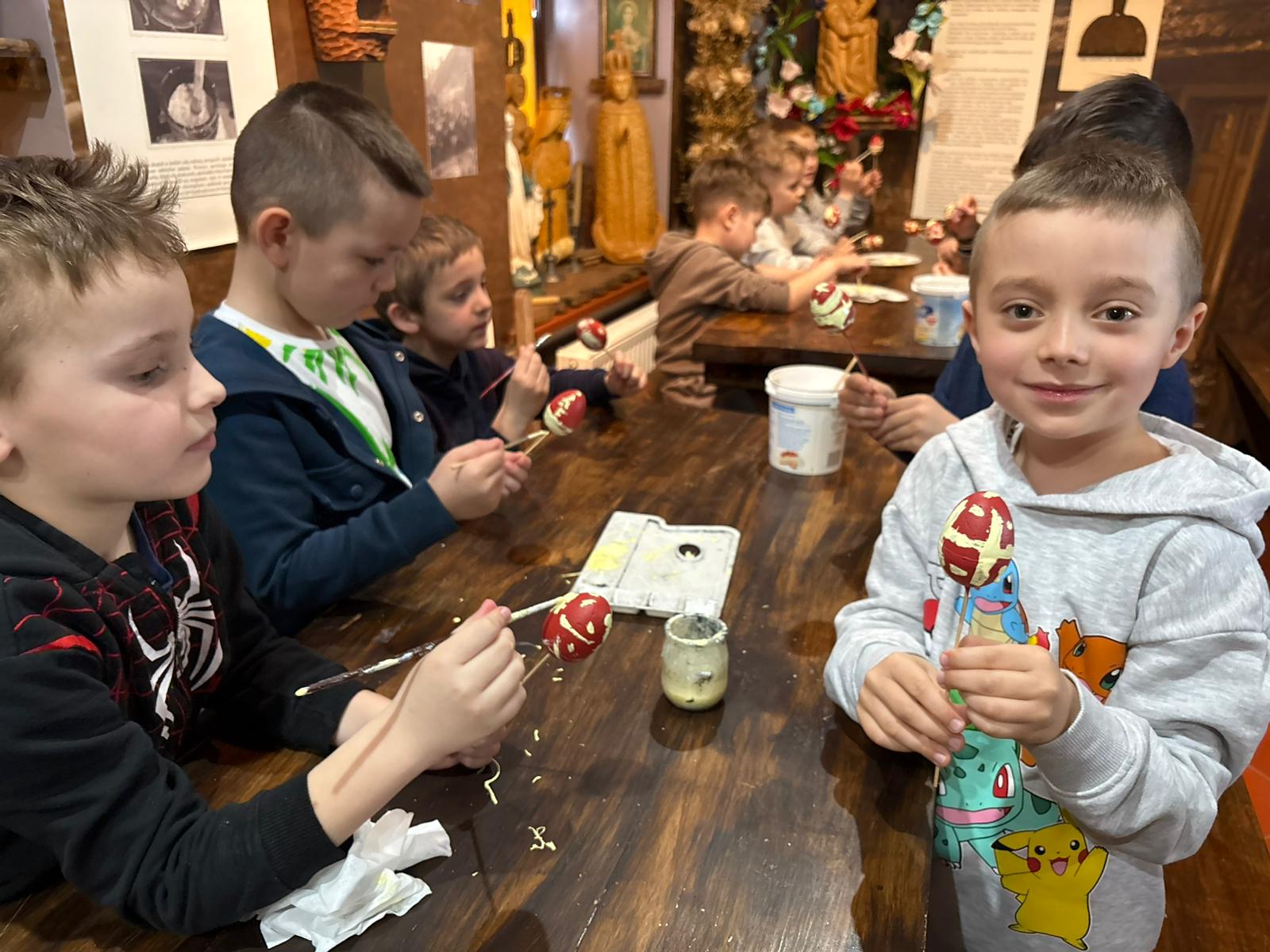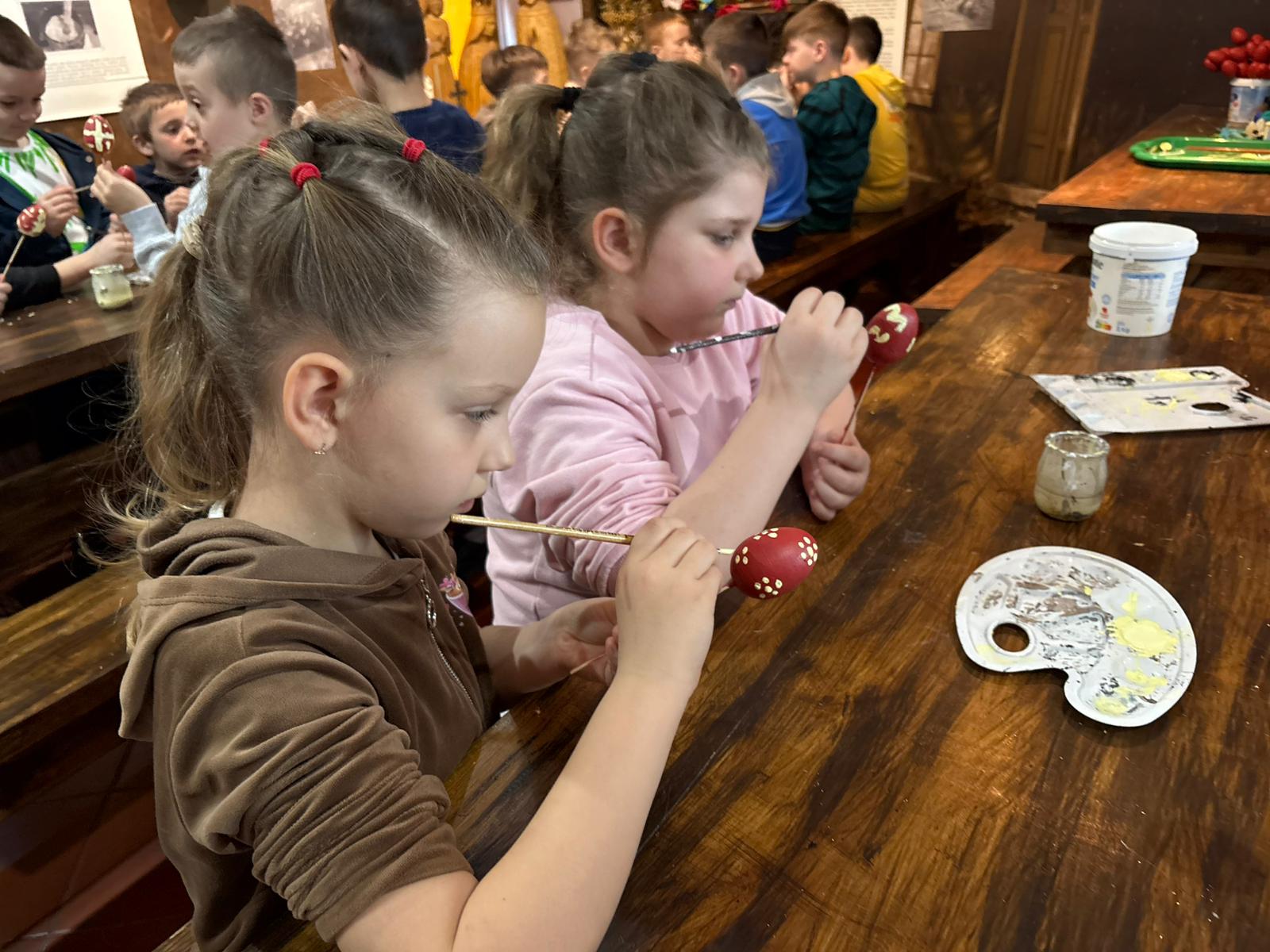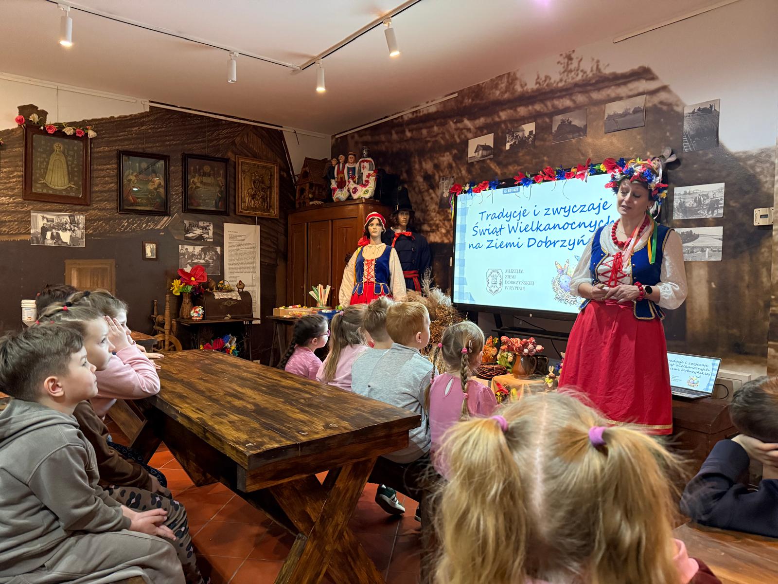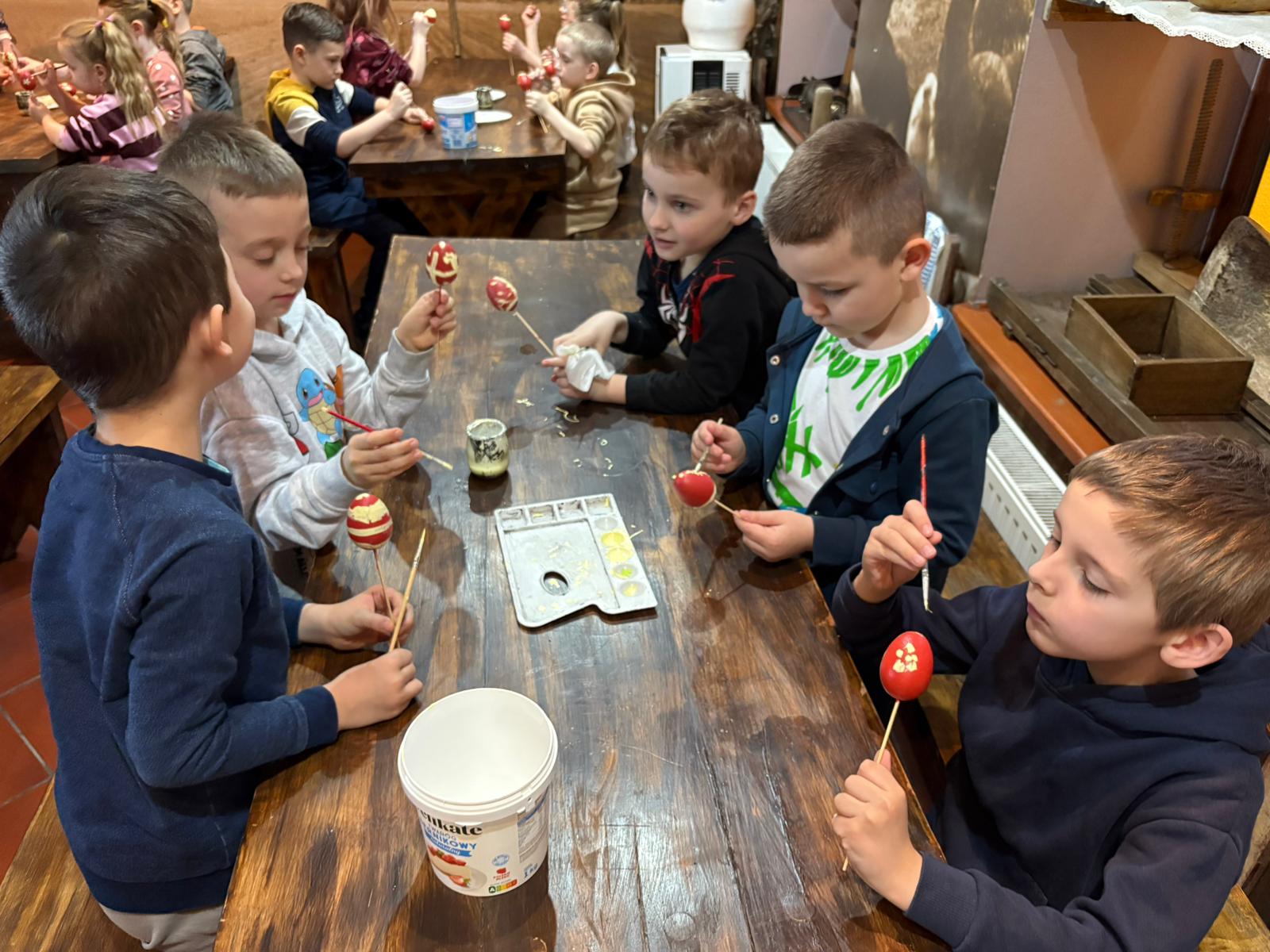 Wyjazd edukacyjny zerówek do Muzeum Ziemi Dobrzyńskiej w Rypinie był doskonałą okazją do poznania tradycji wielkanocnych. Dzieci dowiedziały się, jak dawniej przygotowywano się do świąt, jakie zwyczaje towarzyszyły Wielkanocy oraz jakie znaczenie mają poszczególne symbole świąteczne. Podczas warsztatów własnoręcznie wykonały ozdoby wielkanocne, rozwijając swoją kreatywność i zdolności manualne. Wyjazd połączył naukę z zabawą, wprowadzając dzieci w radosną atmosferę nadchodzących świąt.